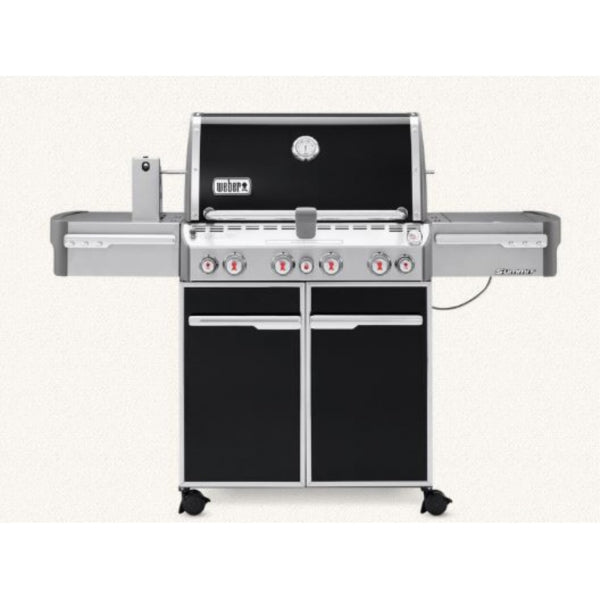 Let your homemade BBQ sauce simmer on the side burner to compliment the golden brown rotisserie chicken under the lid. The four burners, large cooking area and abundance of features in the Summit® E-470 gas grill is what every grill master strives for.