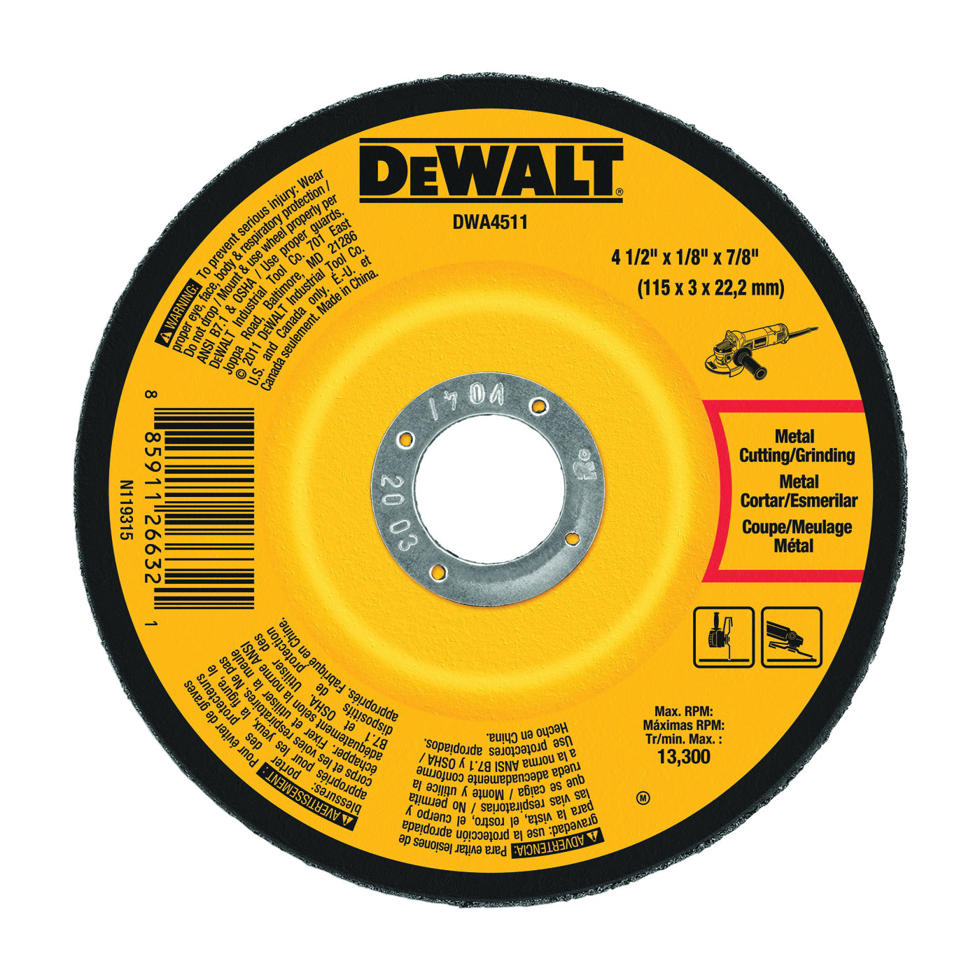 Featuring a soft formulation for expedited grinding of hard materials, DeWALT-type 27 metal grinding wheels contain 3 full sheets of fiberglass for helps to increased durability and safety.