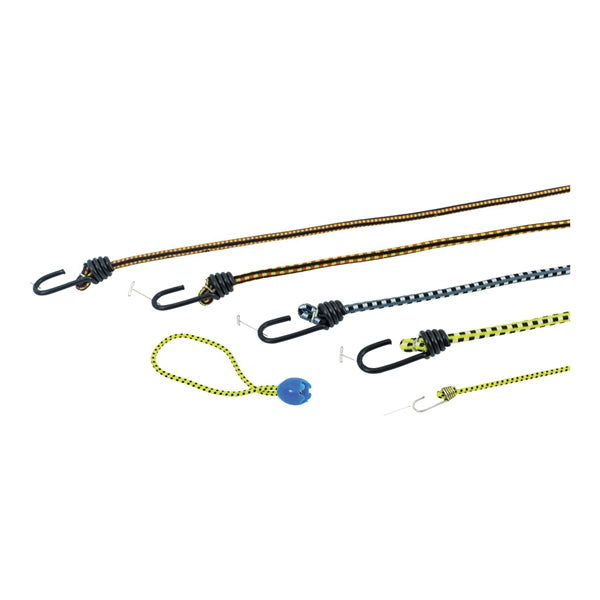 Keeper® bungee cords are made from the highest quality materials for long-lasting dependability no matter what the application. All Keeper® bungee cords are designed to withstand UV rays and weather damage with durable outer jackets in bright, visible colors. Inside, premium rubber ensures top quality performance and outstanding toughness. Heavy gauge steel hooks at both ends are coated with a protective vinyl covering, which prevents rust and ensures that hooks will never damage paint or scratch metal. Keeper® bungee cords are strong enough to be relied on whenever they're needed. 20-Piece jar contains (5) 10 minis, (4) 12 in, (2) 18 in, (2) 24 in, (1) 32 in, 6 bungee balls.