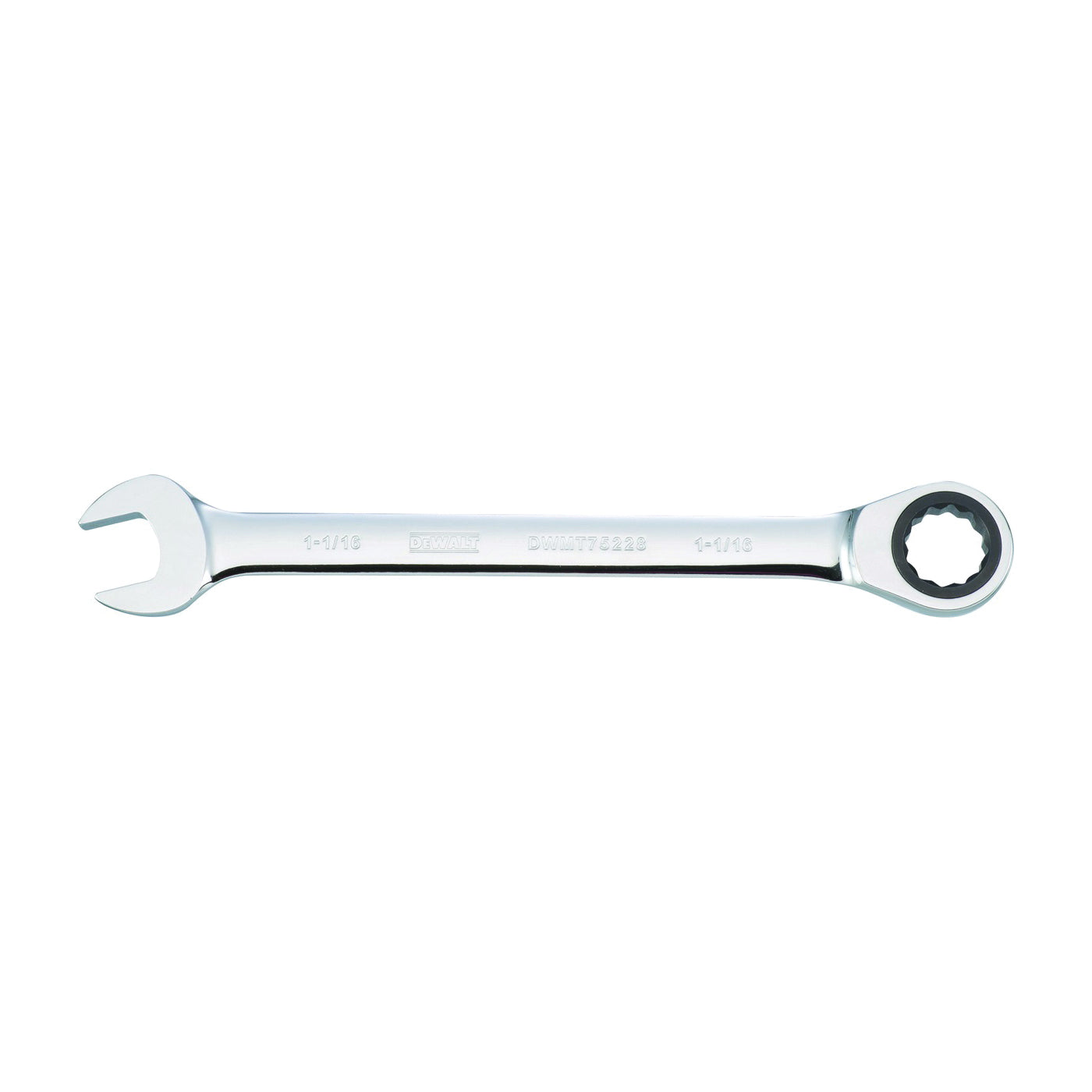 DeWALT Combination Wrench, SAE/Metric: SAE, Head Size: 1-1/16 in, Offset Angle: 15 deg, Box End Thickness: 19/32 in, Box End Width: 2-1/32 in, Open End Thickness: 7/16 in, Open End Width: 2-3/16 in, Chrome, 14-1/8 in L