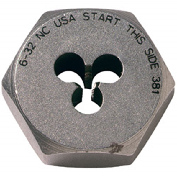 Vermont American Screw Die, Hex, Thread Type: NS, Thread Size: 14-20, Thread Direction: Right-Hand, HCS, 1 in Dia, 0.37 in Thick