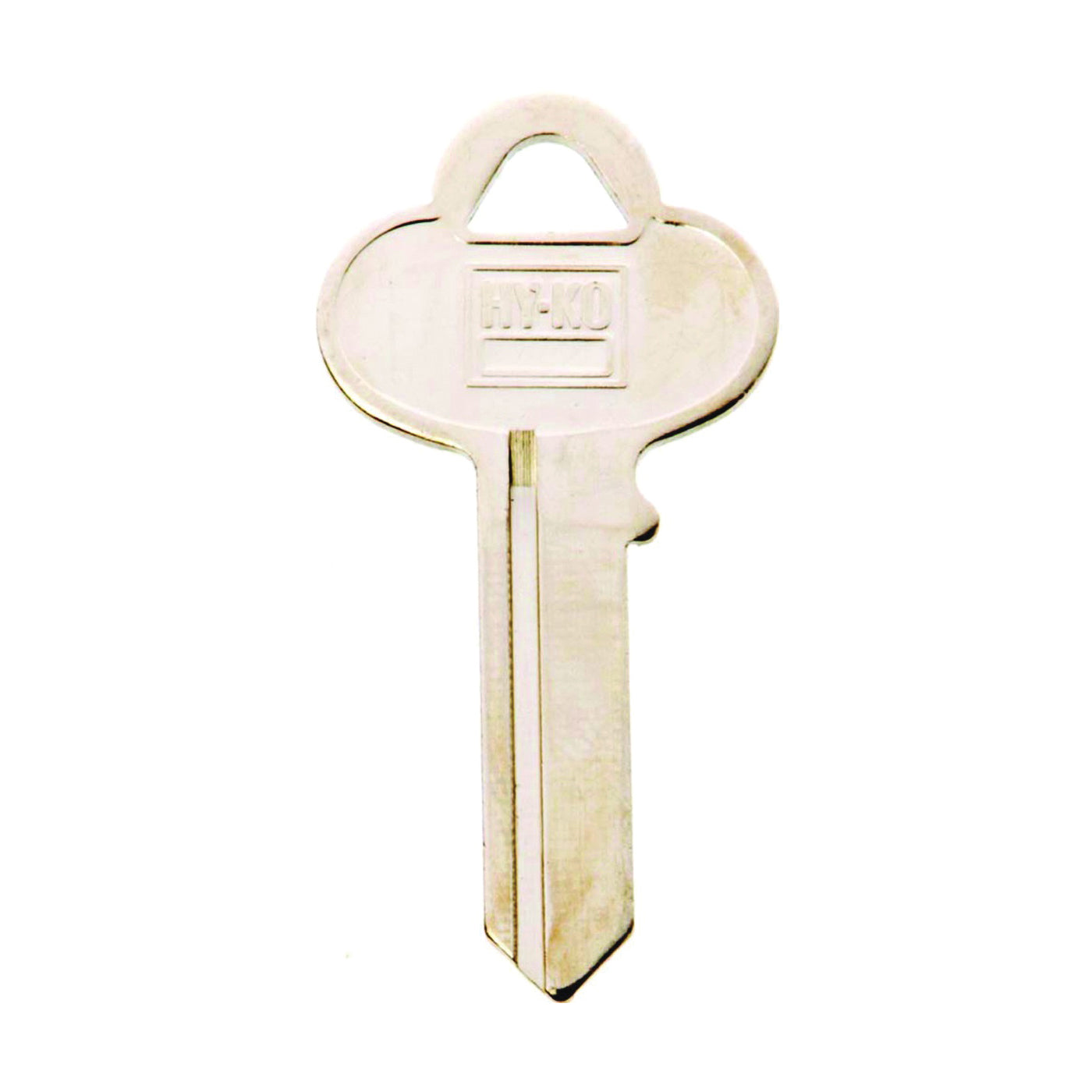 Hy-Ko Key Blank, Key Number: CO103, Brass, Nickel, Dimensions: 2.066 in L x 1.041 in W x 0.087 in D, Suitable for: Corbin Russwin Cabinet, House Locks and Padlocks