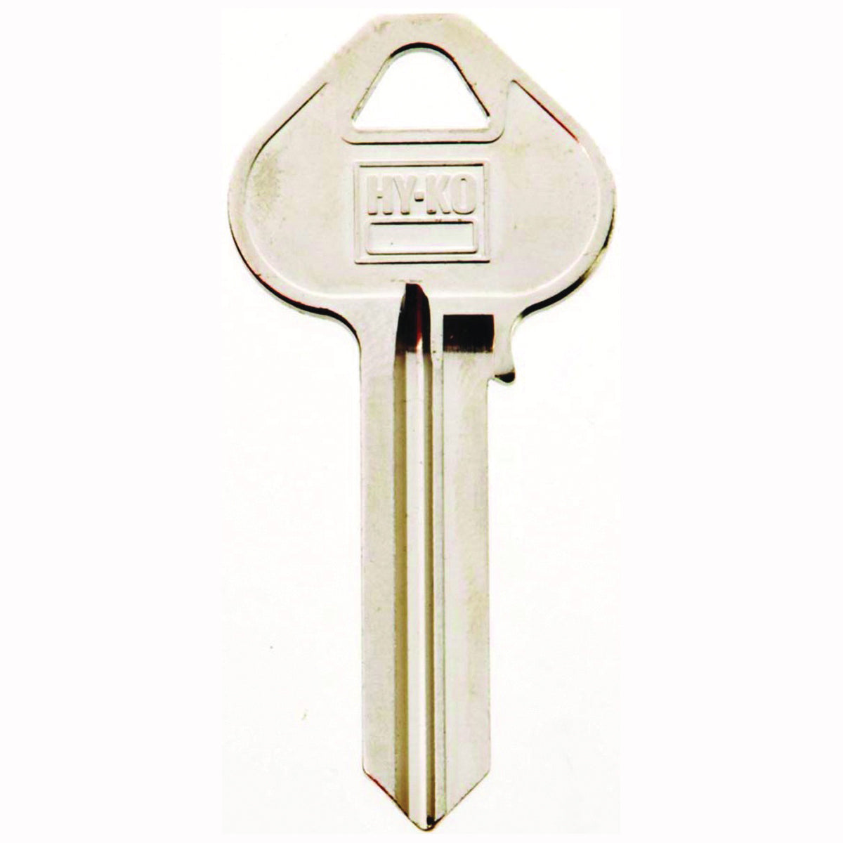 Hy-Ko Key Blank, Key Number: RU16, Brass, Nickel, Dimensions: 2.226 in L x 1.049 in W x 0.086 in D, Suitable for: Russwin and Corbin Cabinet, House Locks and Padlocks