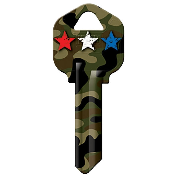 Hy-Ko Key Blank, Design/Theme: Camo Stars, Key Number: KW1-15, Brass, Nickel, Suitable for: Kwikset KW1 Keyways