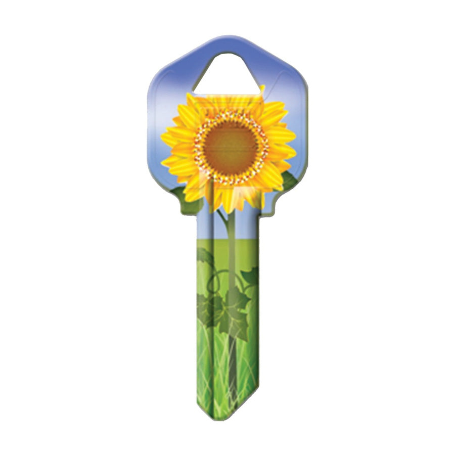 Hy-Ko Key Blank, Design/Theme: Sunflower, Key Number: KW1, Brass, Nickel-Plated, Suitable for: Kwikset KW1 Keyways