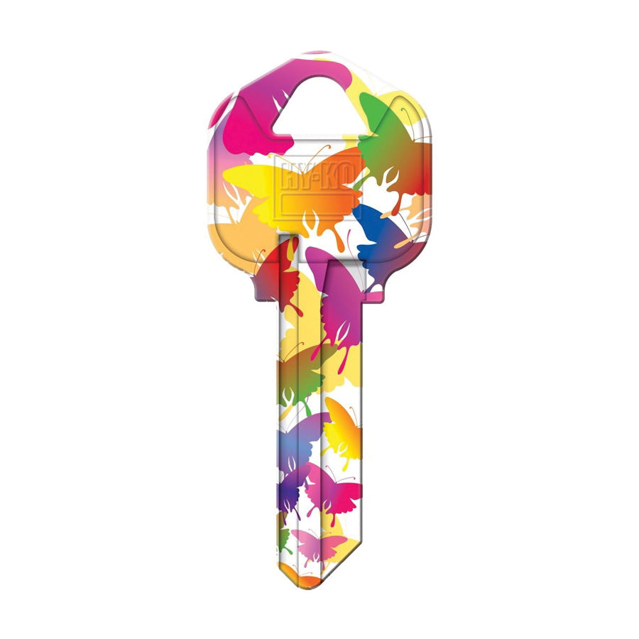 Hy-Ko Key Blank, Design/Theme: Butterfly, Key Number: KW1, Brass, Nickel-Plated, Dimensions: 0.87 in W x 0.08 in D x 2.05 in H, Suitable for: Kwikset KW1 Keyways