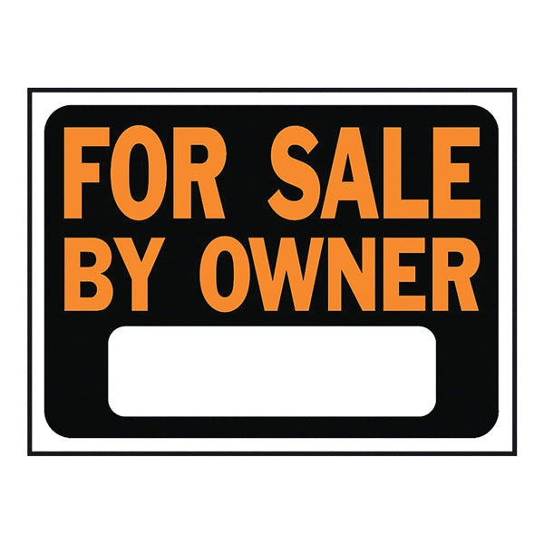 Brightly visible, fluorescent letters on a black background. Durable plastic, weatherproof. Sign states "FOR SALE BY OWNER". Can be used as refill for assortments# P-3100 and WMP-6960.