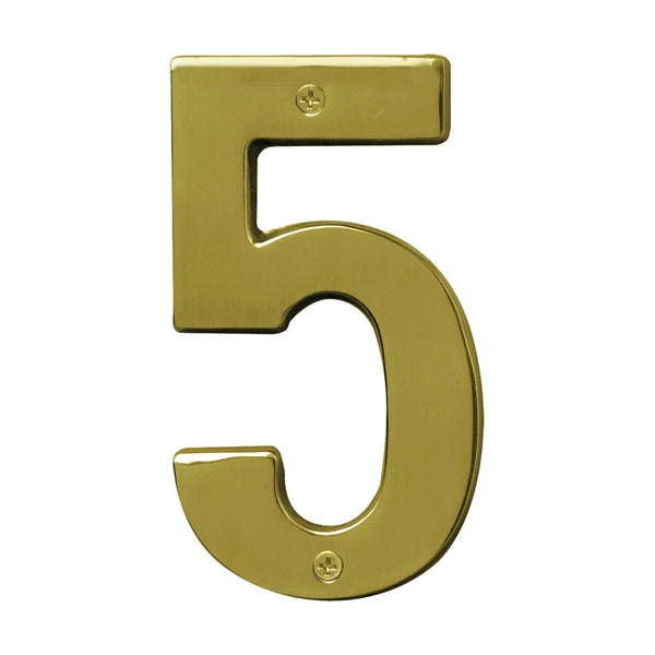• Hy-Ko Prestige Series BR-51PB/5 House Number, Character: 5, 5 in H Character, Brass Character, Solid Brass