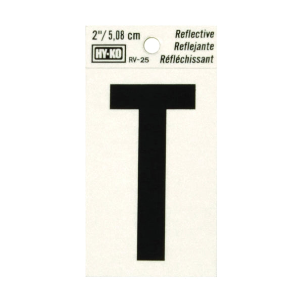 • Hy-Ko RV-25/T Reflective Letter, 1-1/2 in W x 3 in H Dimensions, Character: T, 2 in H Character, Black Character, Vinyl