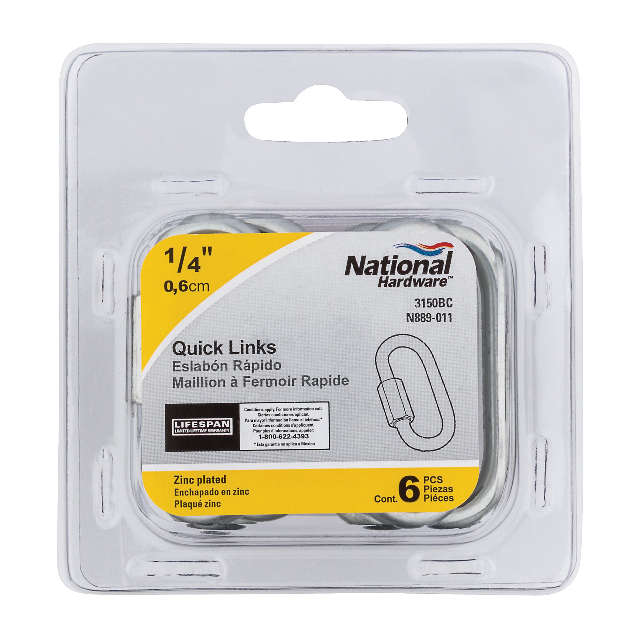 National Hardware Quick Link, Trade Size: 1/4 in, Opening Size: 0.31 in, Working Load Limit: 880 lb, Steel, Zinc, Dimensions: 1.04 in H x 2.24 in W