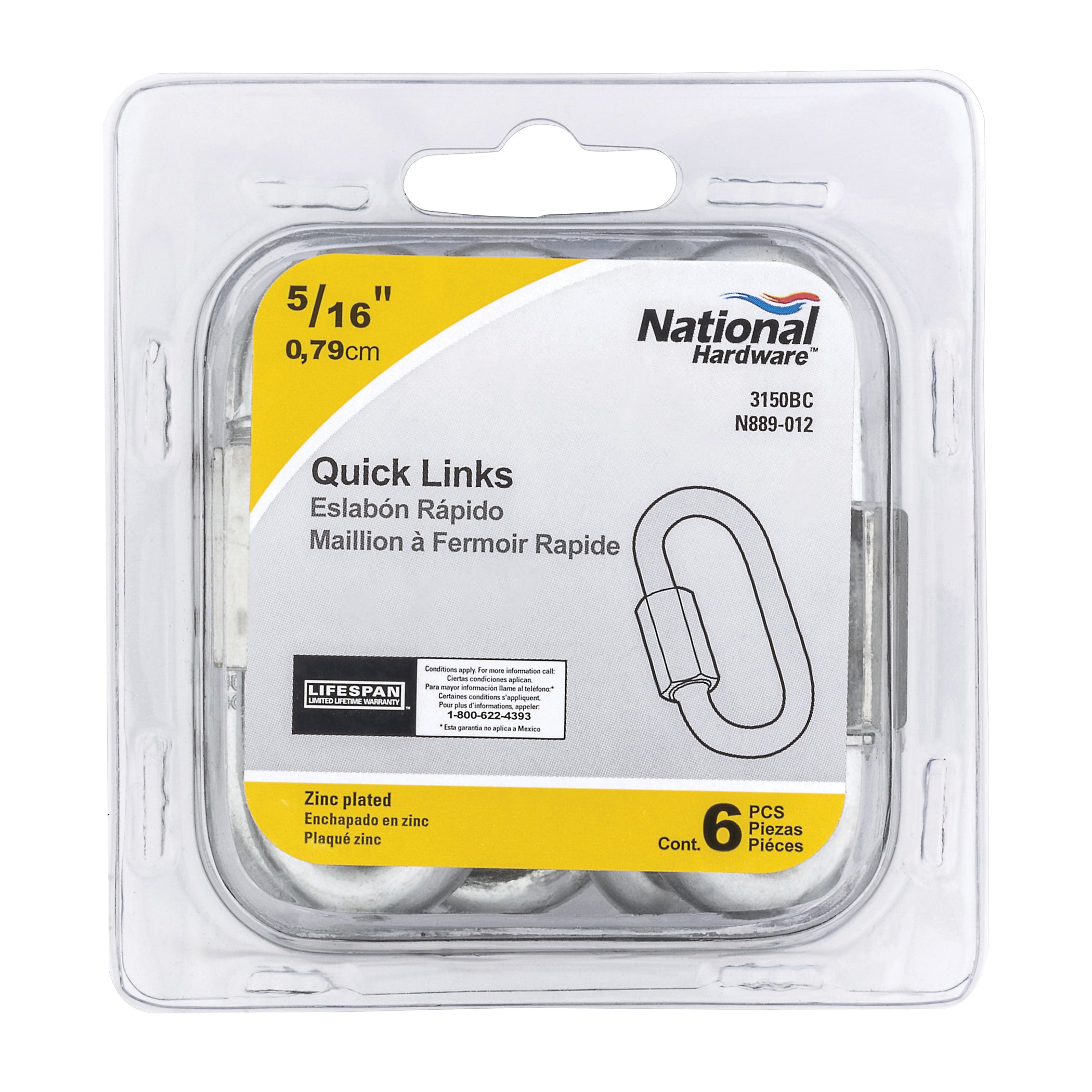 National Hardware Quick Link, Trade Size: 5/16 in, Opening Size: 0.39 in, Working Load Limit: 1760 lb, Steel, Zinc, Dimensions: 1.32 in H x 2.91 in W
