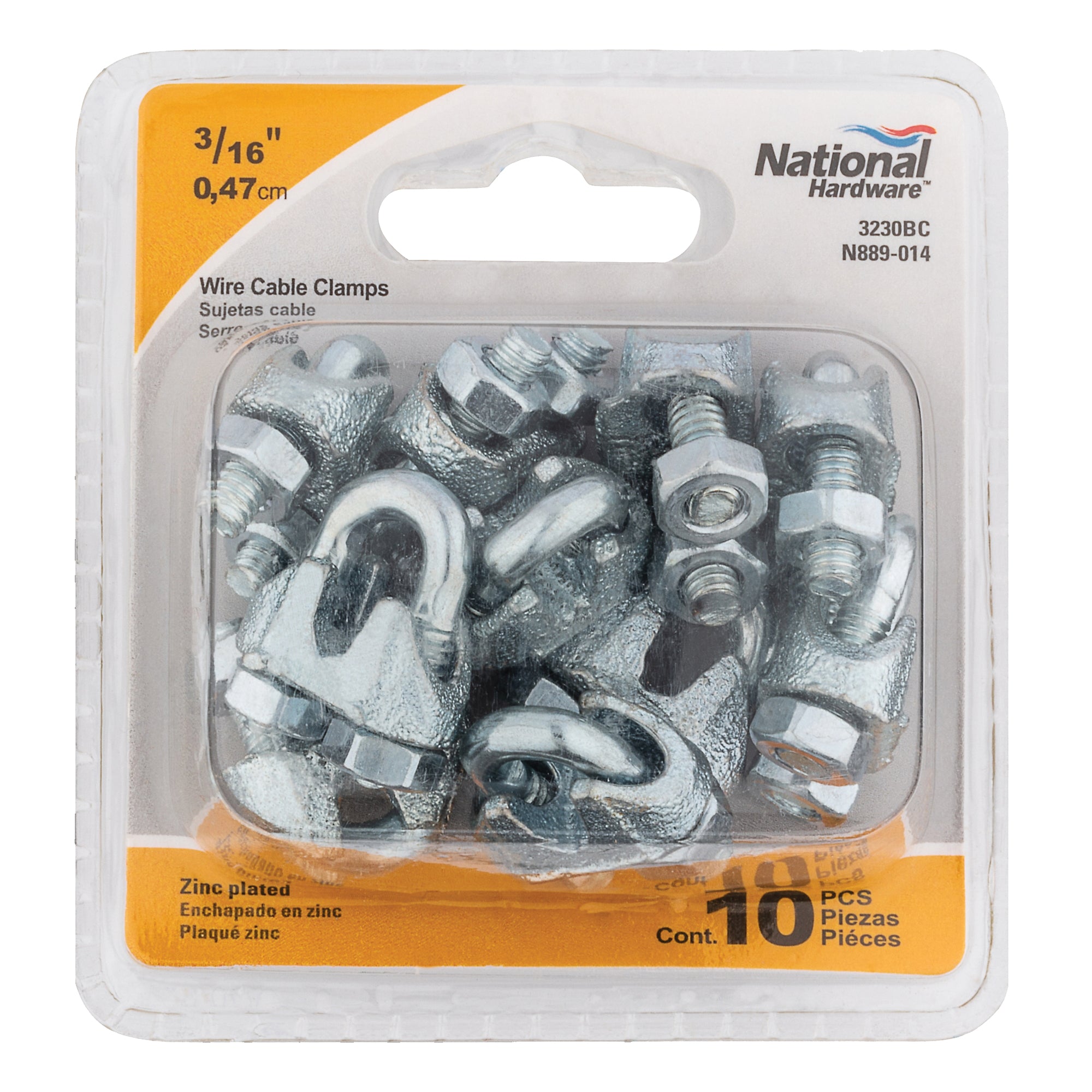 National Hardware Wire Cable Clamp, Cable Diameter: 3/16 in, Inside Length: 19/32 in, Malleable Iron/Steel, Electro Galvanized/Zinc, 1 in L, 9/16 in W