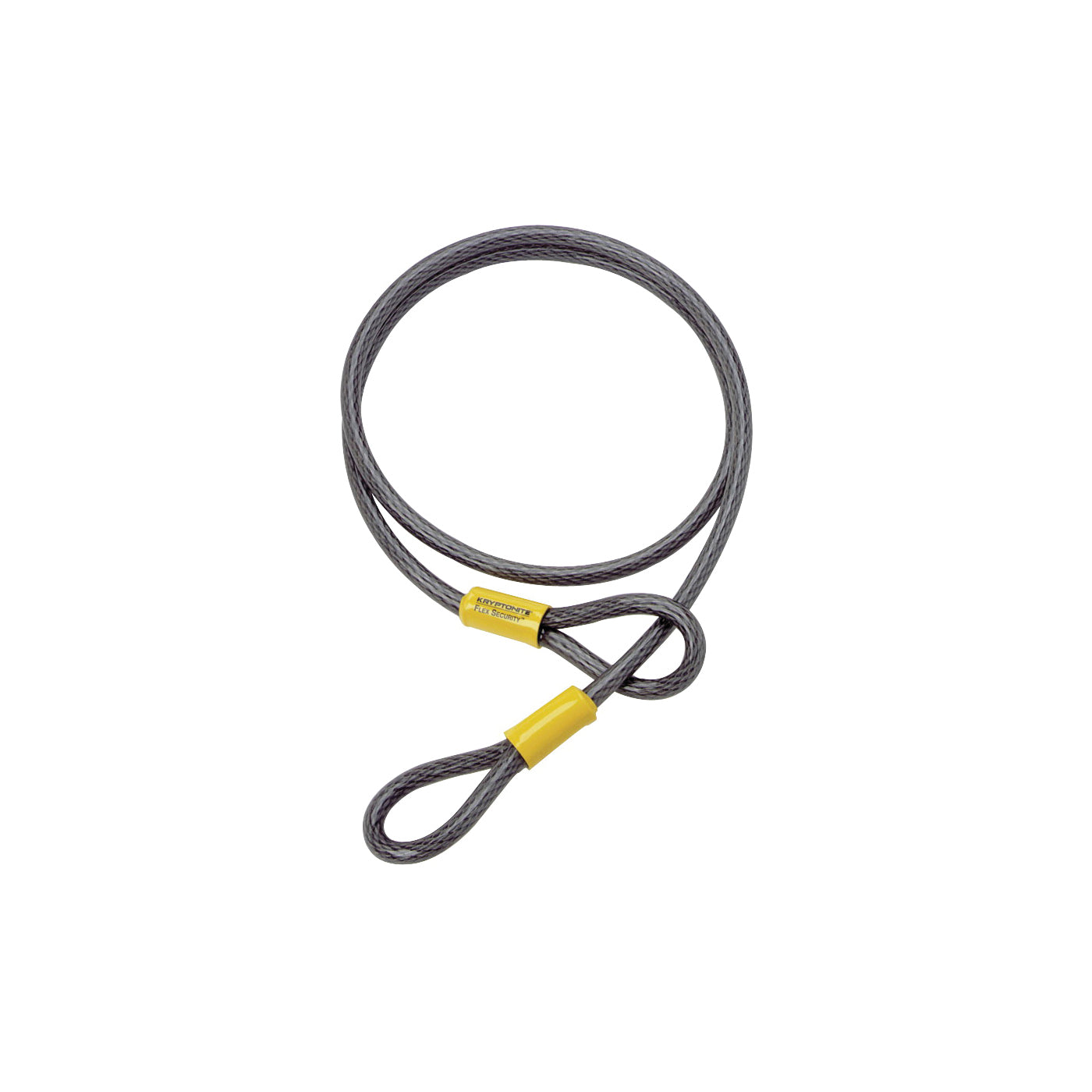 Braided steel vinyl-coated cable with extra long oversized swages. Double loop design allows cinching for more usable length and more flexible lock-up options with Kryptonite padlock or any padlock. 3/8 in Dia cable.