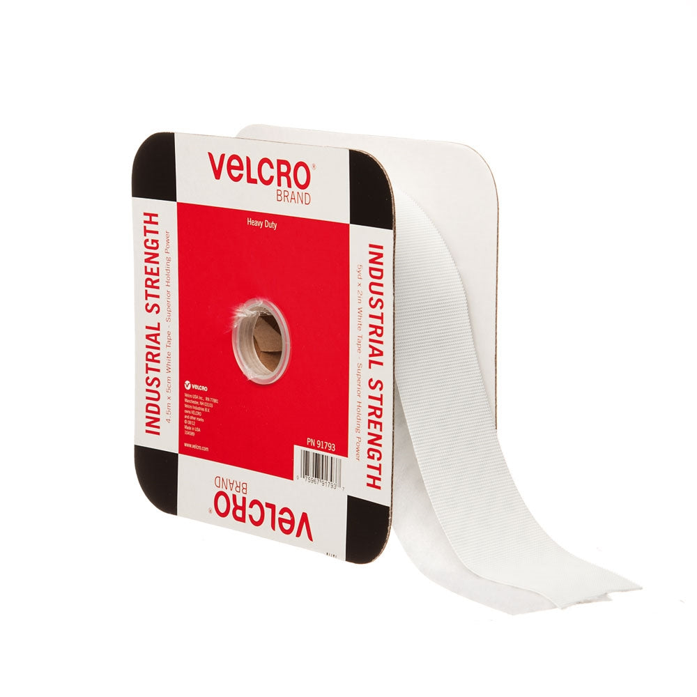 • VELCRO Brand 90198 Fastener, 2 in W, 15 ft L, Nylon, White, Rubber Adhesive