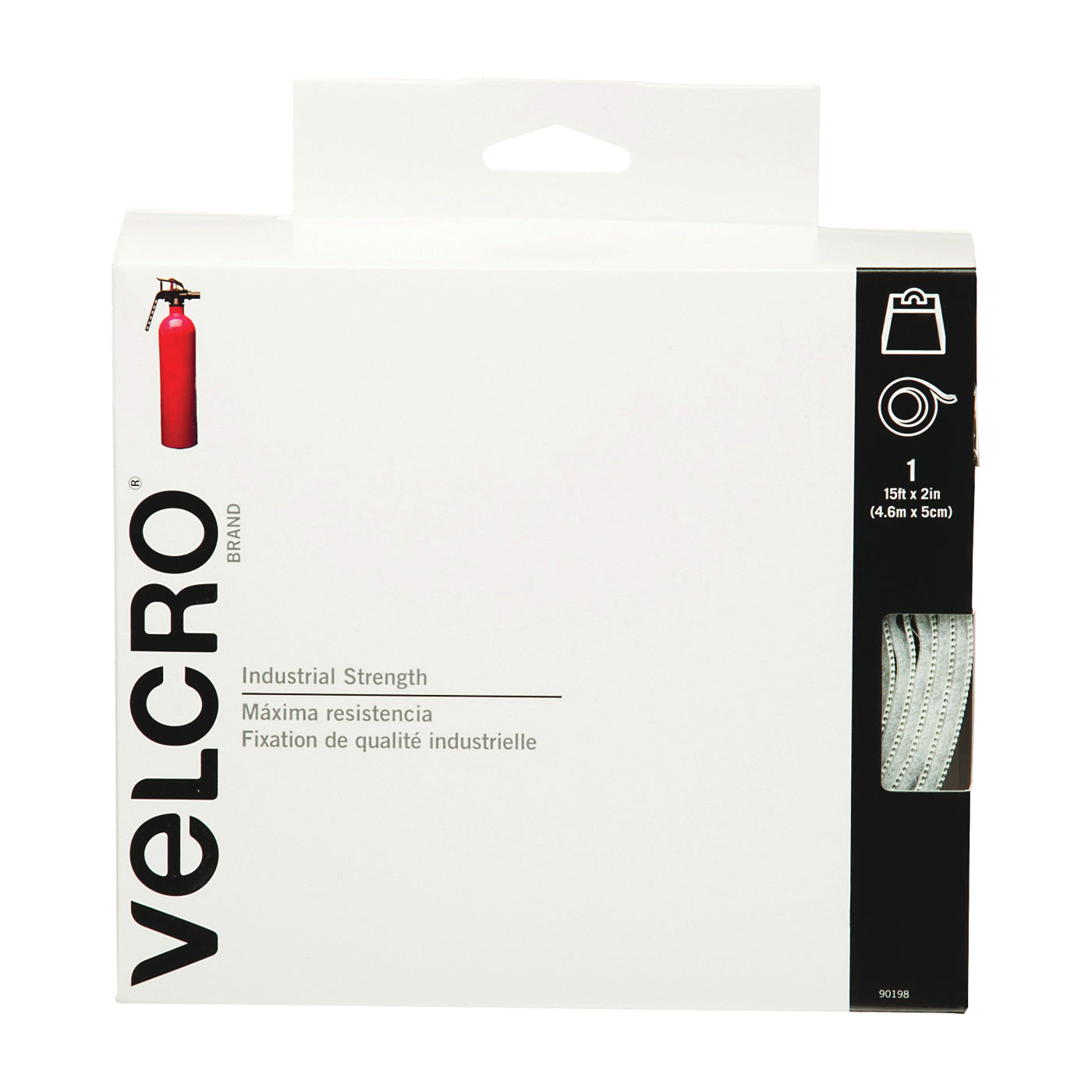 • VELCRO Brand 90198 Fastener, 2 in W, 15 ft L, Nylon, White, Rubber Adhesive
