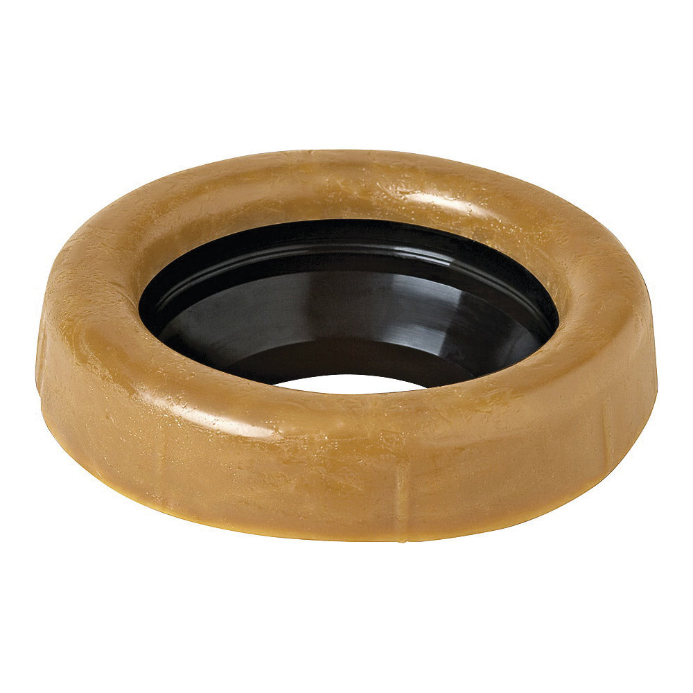 Resilient, springs with bowl movement. Permanent. Will not rot. No-seep sleeve protects sealing area, extends bowl into waste line. Large up to 1/2 in tolerance in rough-in and bowl setting; compression gives positive seal. Holds up to 90 lb psi at 85% compression. Urethane core reinforcement resists puncture by carrier coupling or flange. Boxed.