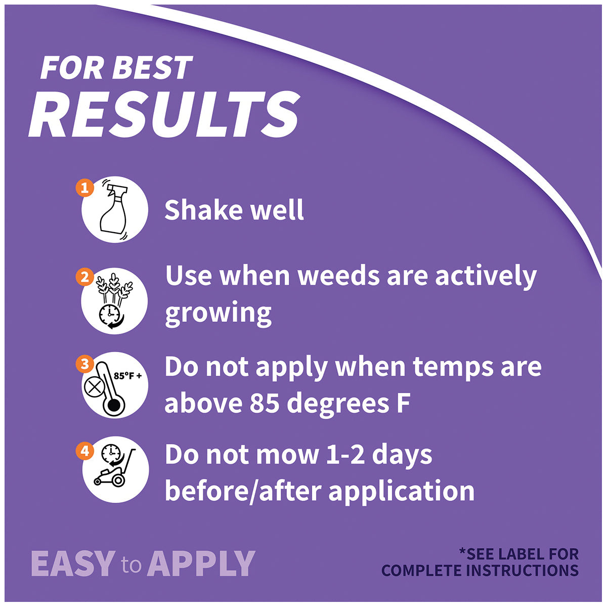Effective on over 200 hard to kill weeds, right to the roots. Visible results in just 24 hours. Won't harm lawn grass when used as directed. Product performs well in both warm and cool weather.