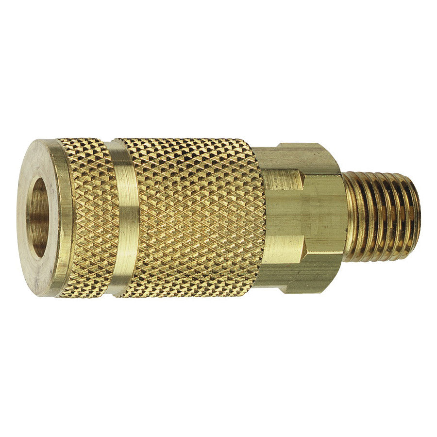 This design is identified by a 5/16 in pilot and ball groove which is nearly round. It is similar in appearance to the industrial Interchange and care must be taken to correctly identify. Couplers are available in both standard and push to connect style sleeve.