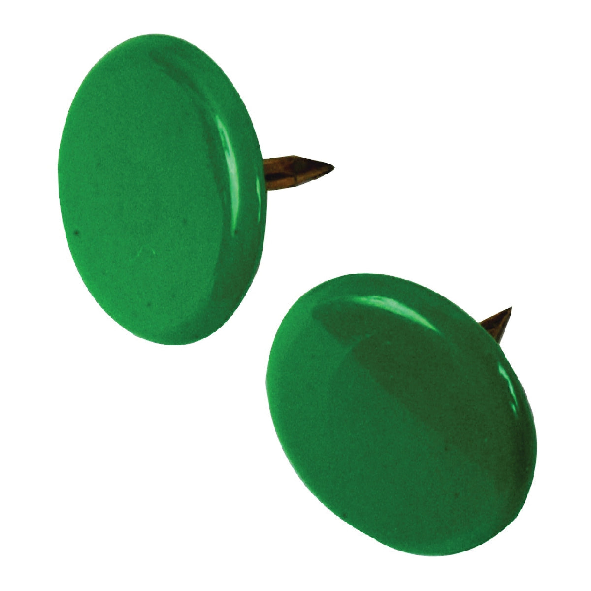 Hillman Thumb Tack, Head Type: Cap, Head Size: 5/16 in, Shank Size: 15/64 in, Point Type: Sharp, Steel, Painted, Green, 23/64 in Dia
