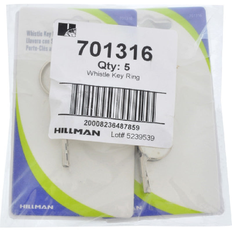 Hillman whistle key ring is ideal for sports, office, school and personal safety. Nickel-plated finish. 1 in spring steel split ring. Ideal for sports and safety.