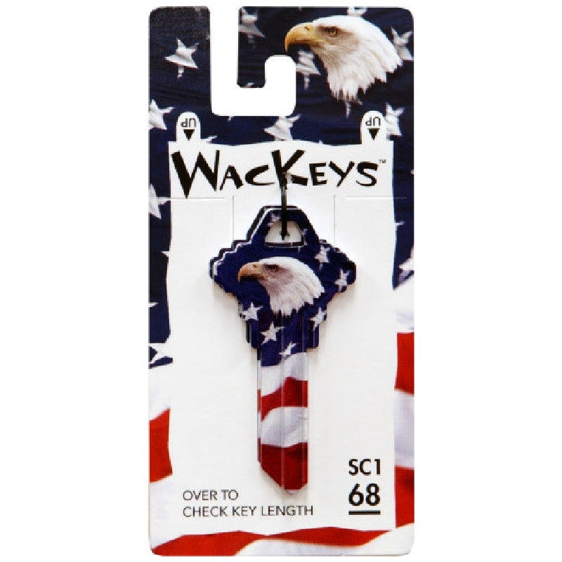 • Hillman WacKey 89909 Key Blank, Bald Eagle, Brass, Nickel-Plated, For: Schlage/68 SC1 Locks