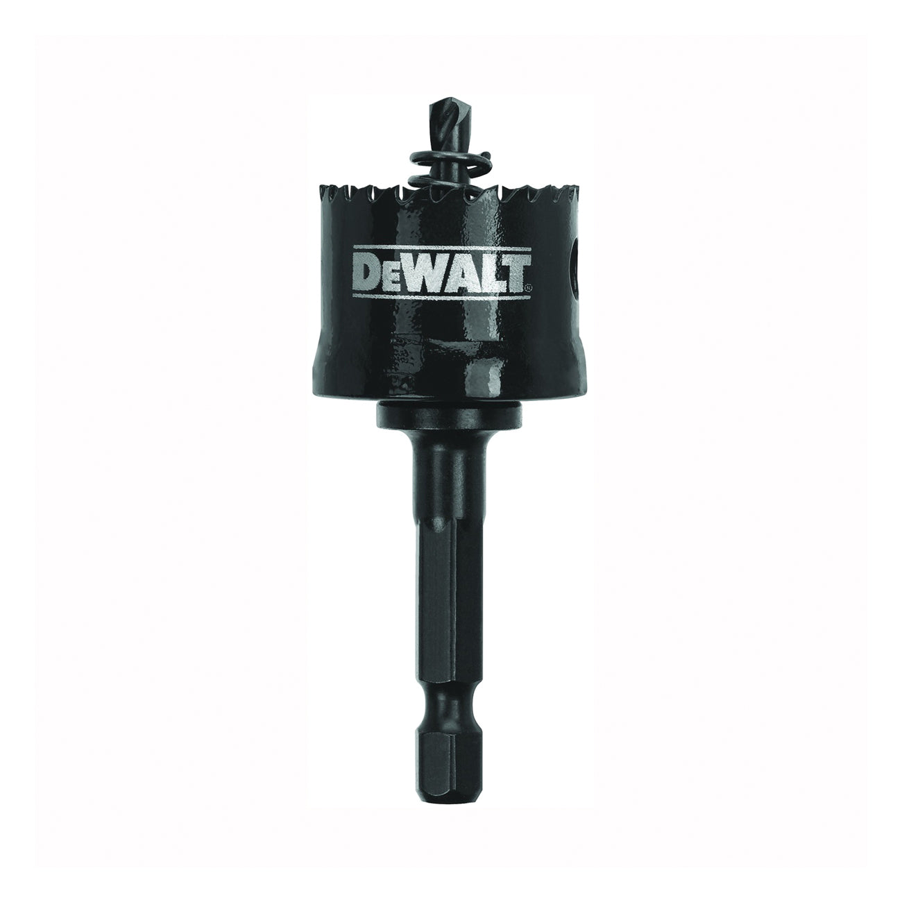 With optimized tooth design for fast metal drilling, DeWALT® IMPACT READY® hole saws are ready to take on your toughest projects. An ejection spring offers easy plug removal and a raised shoulder design helps to prevent breakthroughs. Thin walls help to increase drilling efficiency.
