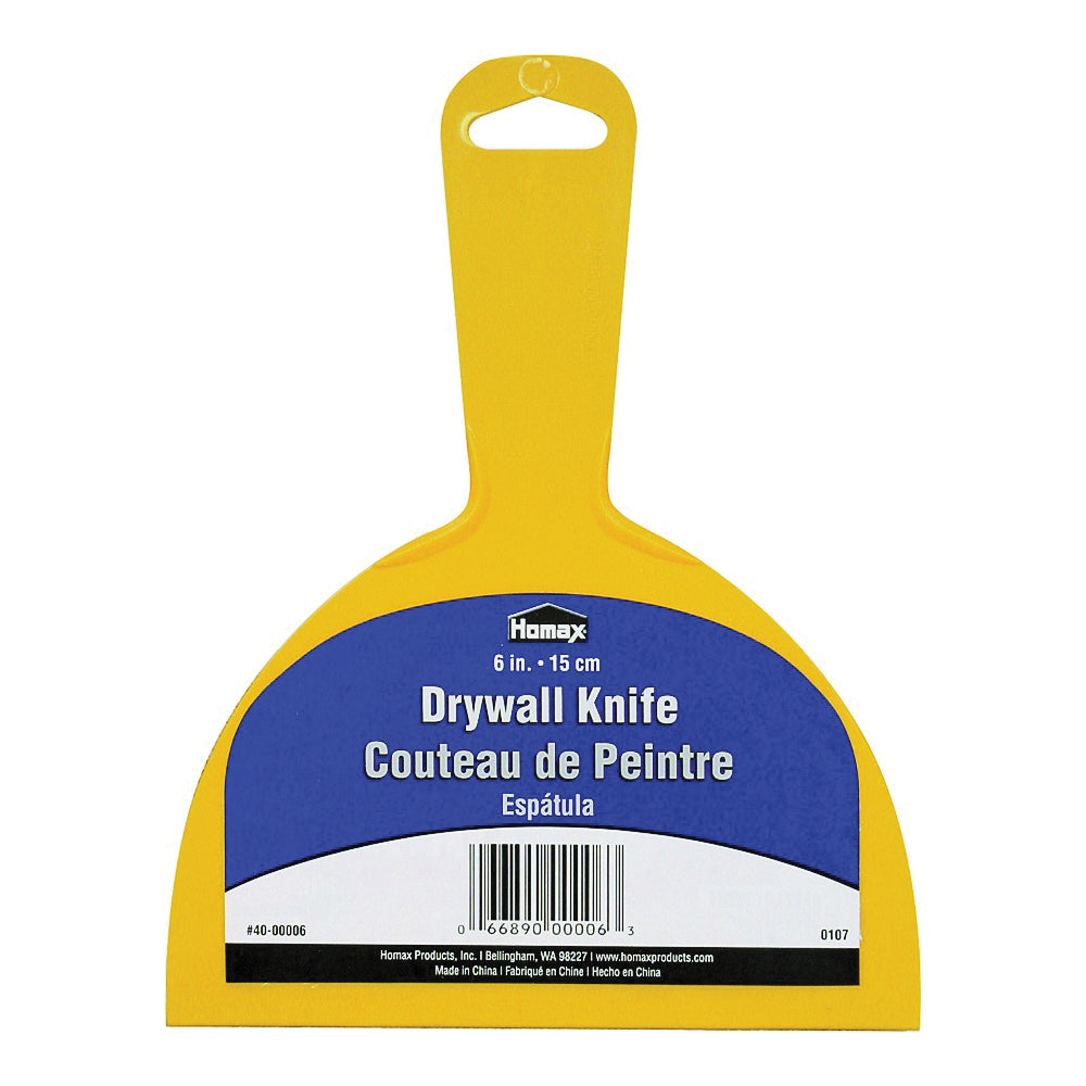 The Homax drywall knife is great for spreading and smoothing drywall joint compound or putty. constructed of heavy-duty, high-impact polystyrene, Homax drywall knife is both durable and lightweight. it's an easy to use and comfortable drywall tool to hold in your hand. ideal for new or patch and repair drywall jobs.