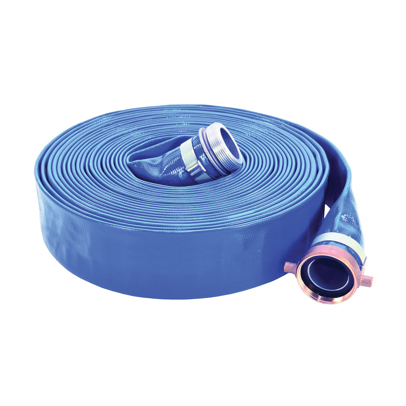 Lay flat PVC contractor-grade hose for pump discharge and agricultural applications.
