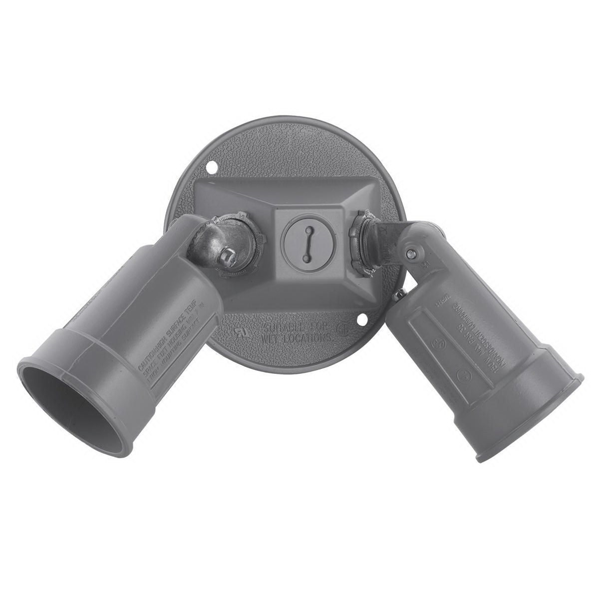 Hubbell Combination Cover, Round, Metal, Powder-Coated, Gray, 1.094 in L, 4-1/8 in W, 4.125 in H, 4-1/8 in Dia, NEMA Rating: 3R, Includes: (2) Lamp Holders, Gasket, Mounting Hardware