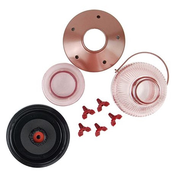 Presenting the patented top-fill feature you love with a stunning new color scheme and glass construction, the Perky-Pet rose gold top-fill glass hummingbird feeder is a favorite of birders and hummingbirds alike. The wide-mouth opening and top-fill design ensure that filling is always easy and mess-free. While you enjoy time saved from filling and cleaning, your hummingbirds won't be able to resist the feeder's lifelike flower-shaped feeding ports. They are bright, soft and flexible just like the flowers they flock to in nature. The flowers' long stem design also acts as a natural bee guard to keep bugs out. Find the best seat in your house now, because hummingbirds are sure to be on their way.
