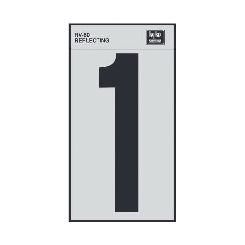 Hy-Ko Bend and Peel Reflective Number, Character: 1, Character Height: 4 in, Vinyl, Dimensions: 2-1/2 in W x 5 in H