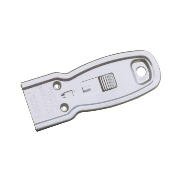 Ergonomically engineered shape for better grip and precise control. Large ribbed control button for safer operation. Blade track design minimizes clogging for positive blade extension and safe retraction. Blade offset at 5 deg to get under paint.