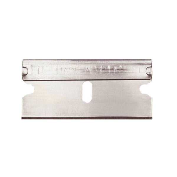 50 single-edge razor blades in convenient storage box. Industrial-quality steel 0.009 in thick. Oiled to prevent rusting. Individually wrapped for safety. 10 packs of 5 blades.