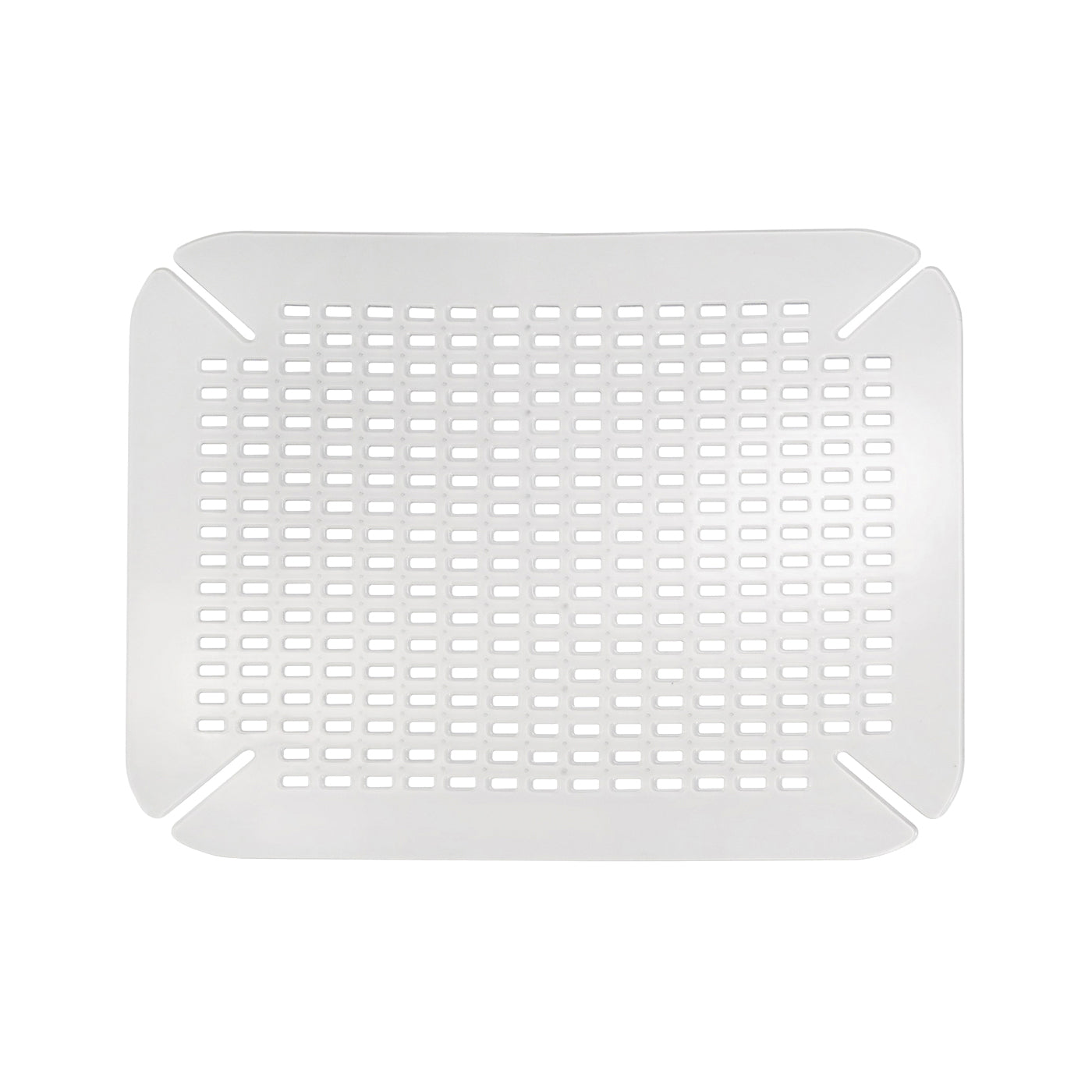 Use to protect sinks from scratches and wear. Lays flat in larger sinks and gradually curves up in smaller sinks. Great for kitchen or laundry rooms. 16 in x 14 in x 0.3 in.