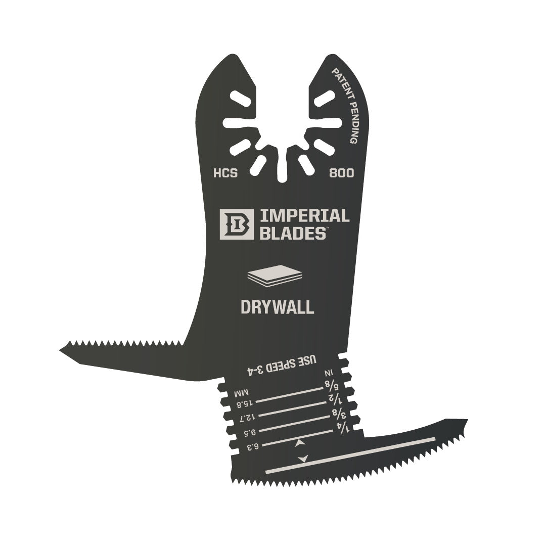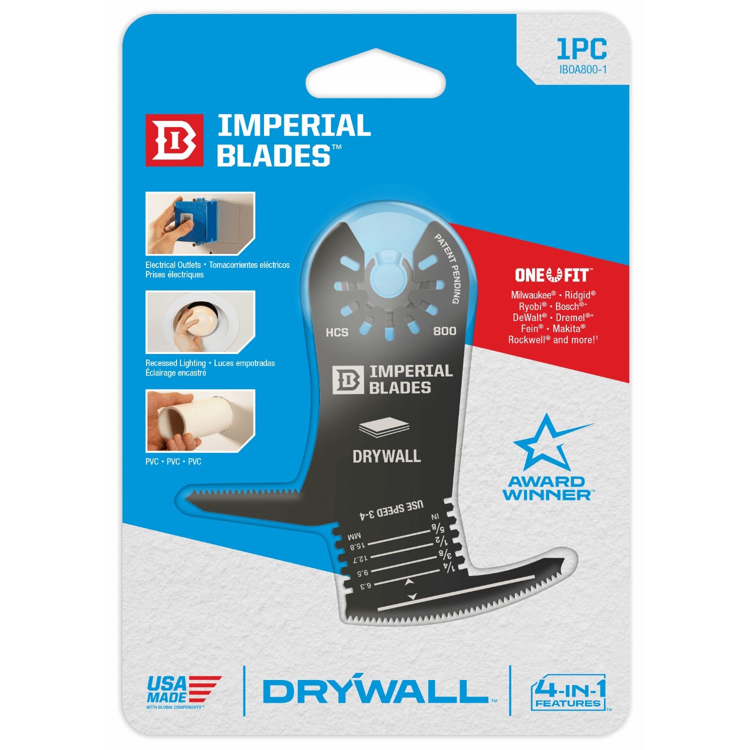 Imperial Blades ONE FIT 4-in-1 Blade, High Carbon Steel, Applicable Materials: Drywall, Black, 3-3/4 in L, 2-1/8 in W, 0.027 in Thick, Suitable for: BLACK & DECKER, Chicago Electric, Craftsman, DeWALT, Dremel, Metabo, Genesis, Hitachi, Makita, Masterforce, Milwaukee, Performax, Porter Cable, Ridgid, Rockwell, Ryobi, Worx, Tool Shop, Fein Multi-Master, Kobalt, AEG, Hyper Tough and Mastercraft Oscillating Tools
