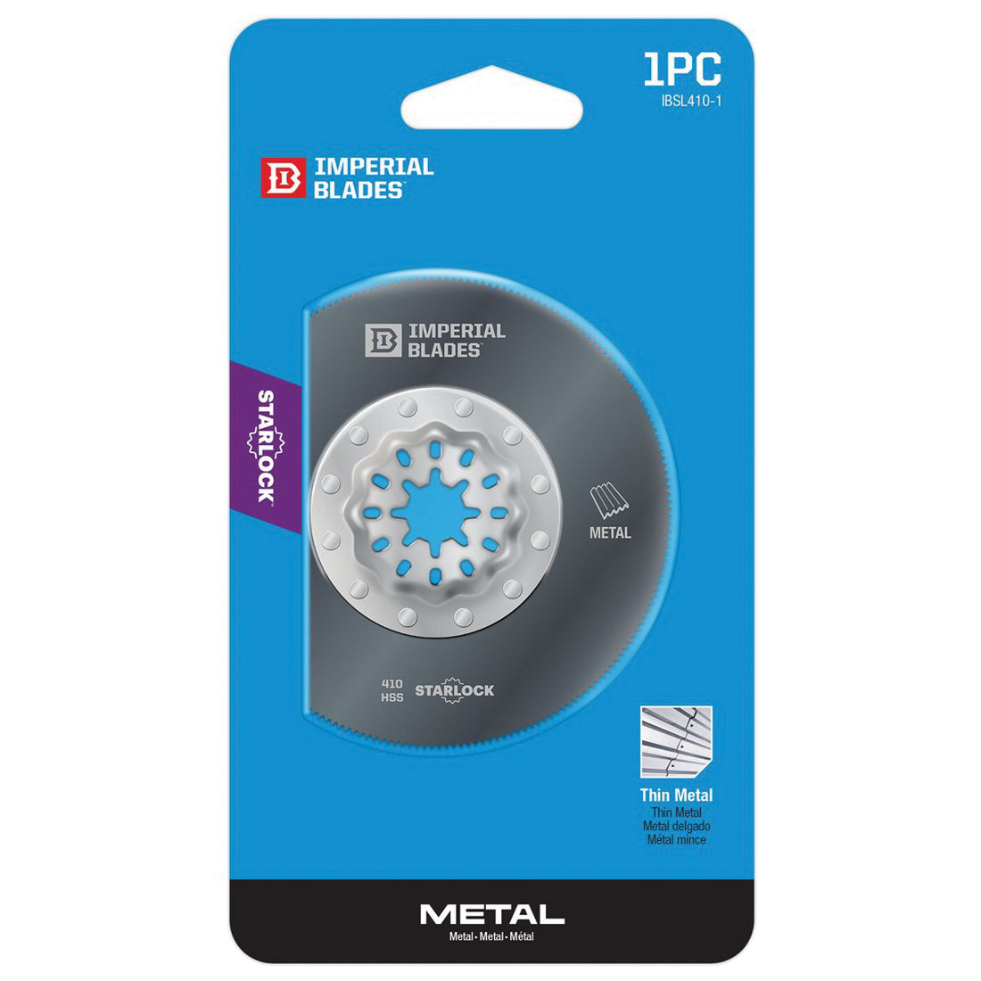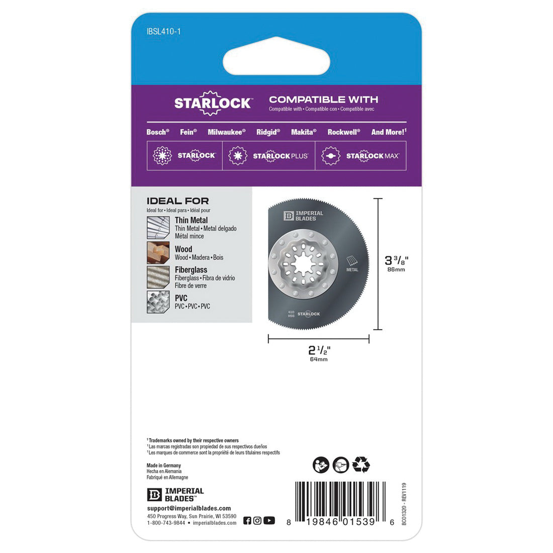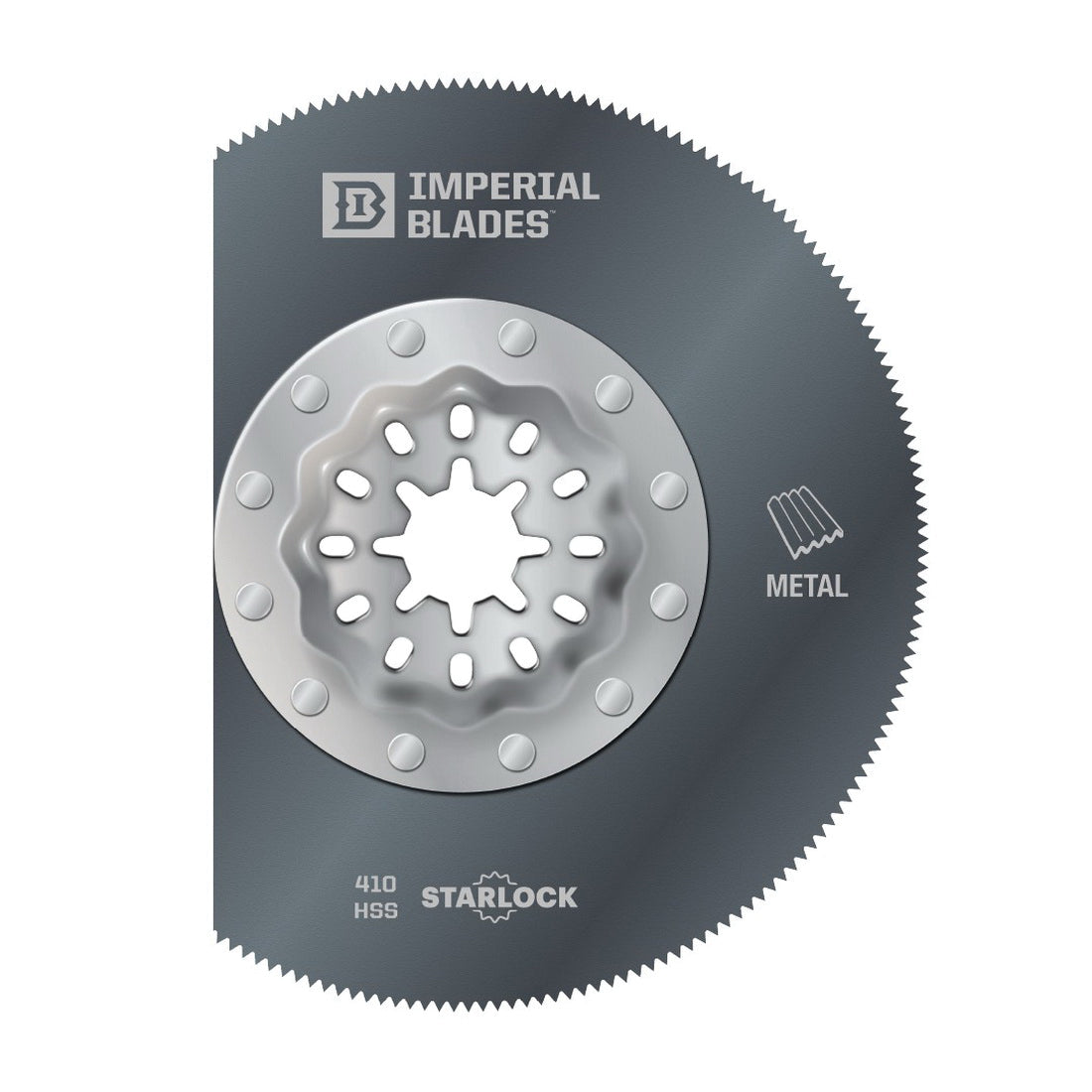 Imperial Blades Starlock Segment Blade, Teeth per Inch: 20, Bi-Metal, Applicable Materials: Fiberglass, PVC, Thin Metal, Wood, Black, 3-3/8 in L, 3-3/8 in W, Suitable for: Makita, Masterforce, Milwaukee, Performax, Rockwell, Bosch Starlock, Bosch StarlockPlus, Bosch StarlockMax, Fein Multi-Talent Oscillating Tools