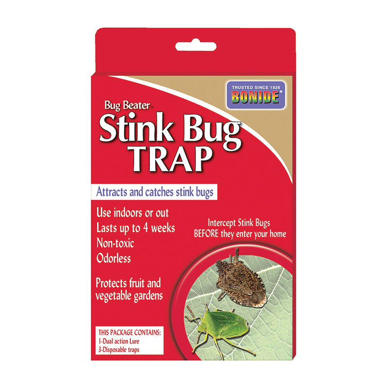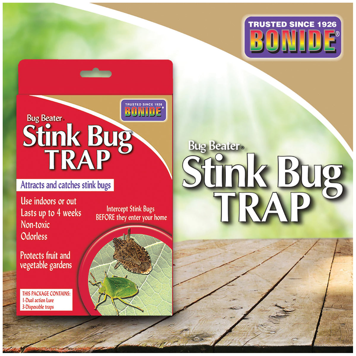 BONIDE Stink Bug Trap uses a dual action lure to control stink bugs both inside and outside your home. It's non-toxic and has an odorless formula. Traps provide up to 4 weeks of protection.
