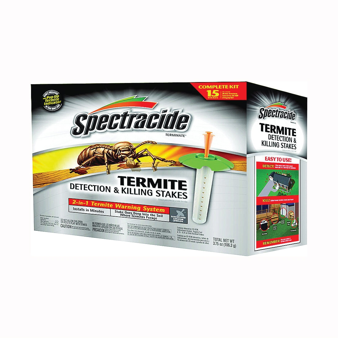 Spectracide terminate termite detection and killing stakes are do-it-yourself termite bait stakes available to consumers. The stakes have a pop-up and an easy-to-find locator shields that make it easier for regular inspection. The kit also includes a digging tool, for faster installation and complete instruction booklet.