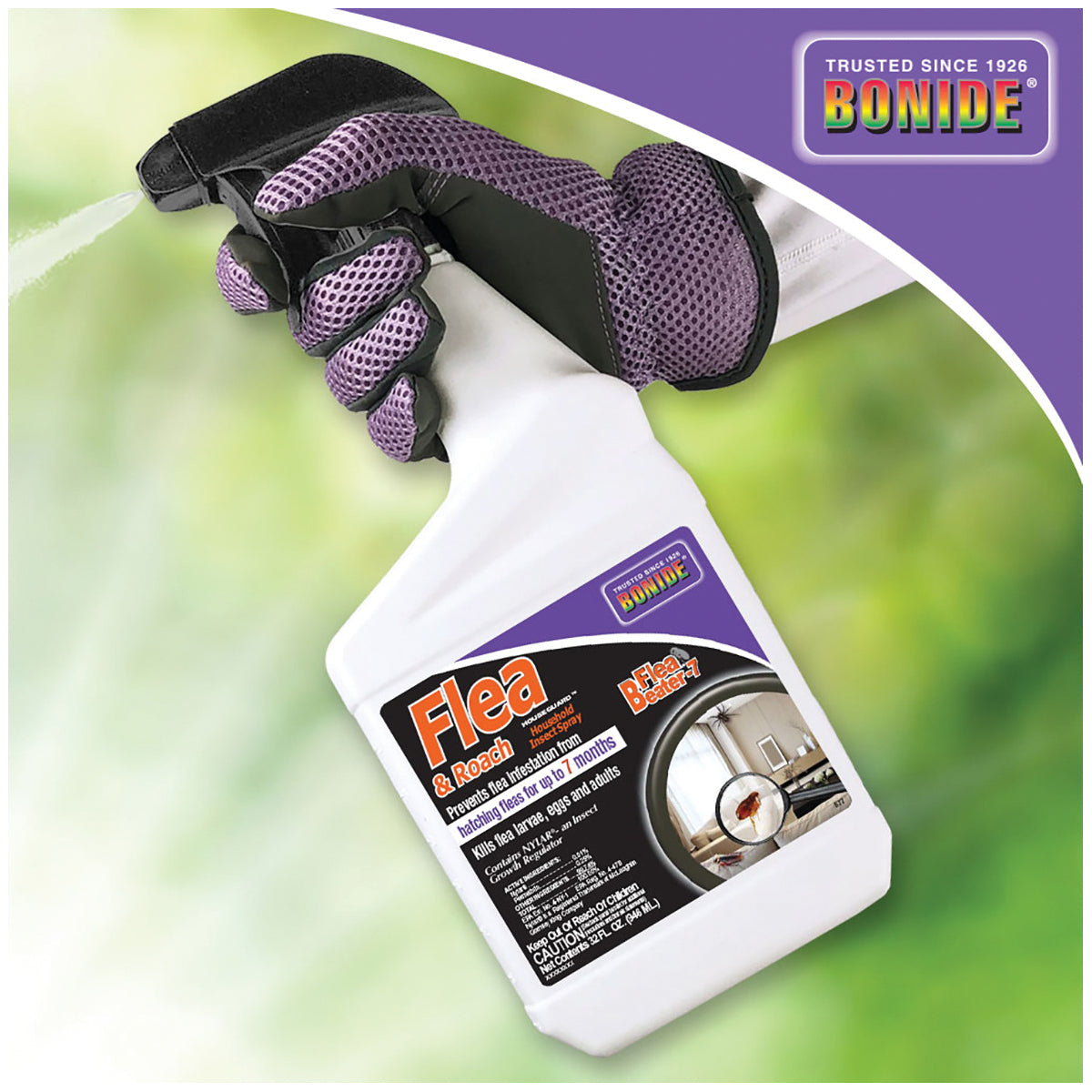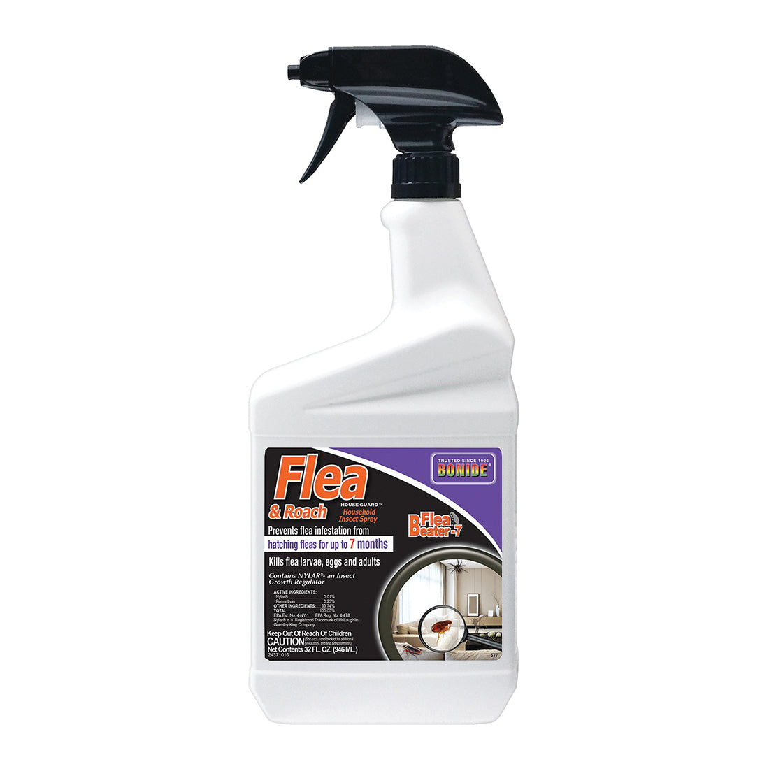 This exceptional formulation kills fleas and roaches on contact and breaks their life cycle by killing larvae, eggs and adults. Use in the home wherever fleas or roaches are a problem. Water based, safe for carpets, drapes, upholstered furniture, pet bedding. This product is conveniently ready to use when it arrives. The spray nozzle makes this product easy to deploy.