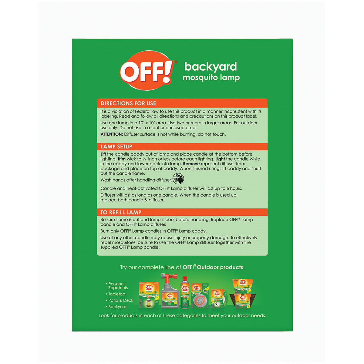 Protect any outdoor party, shindig or festivity with the OFF!® Mosquito Lamp I. Activate the diffuser by lighting the candle and you can be sure your get-together will be enjoyable for up to 6 hr.