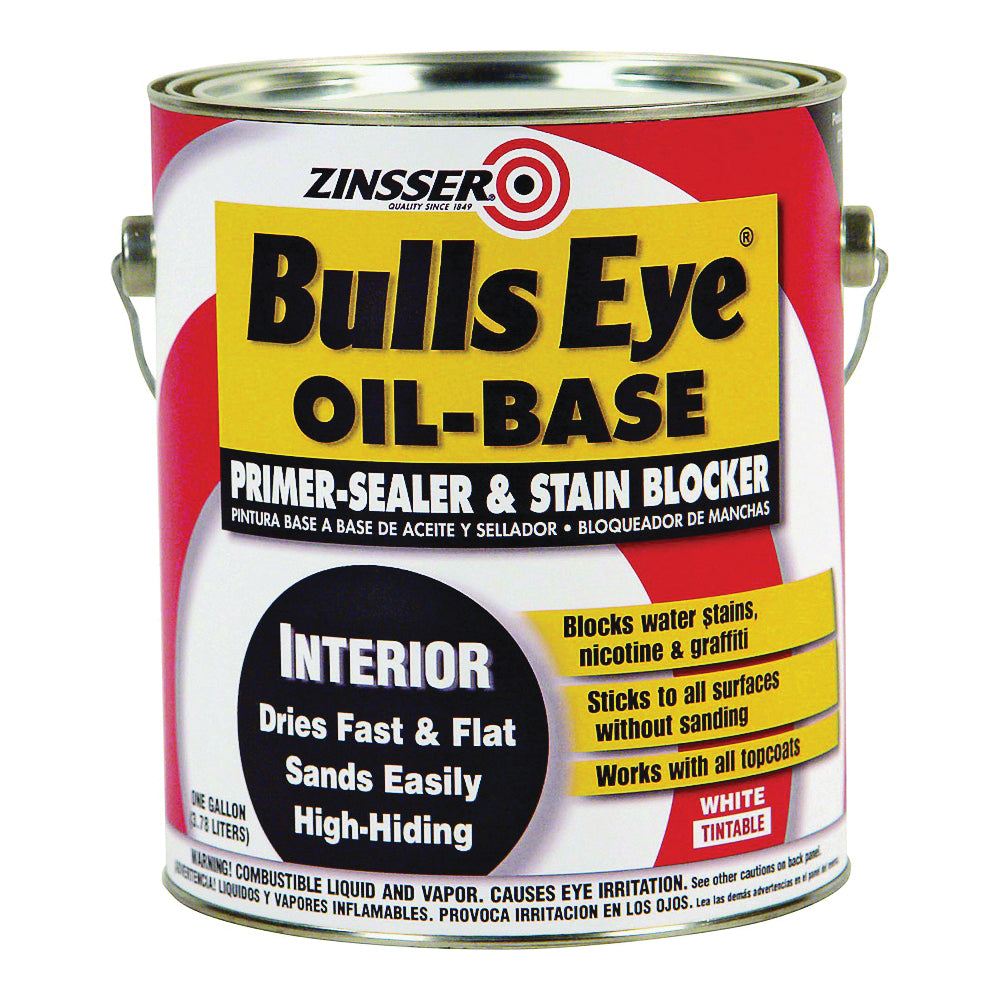 Zinsser® Bulls-Eye® Oil-base interior primer sealer and stain killer is designed for interior applications where a heavy bodied, fast-drying oil-based primer sealer is needed. Bulls-Eye® dries in 2 hrs to a flat finish that sands easily and accepts any latex or oil-based topcoat. Bulls-Eye® effectively blocks stains, bright colors and graffiti on walls, ceilings, doors, trim, windows and cabinetry.