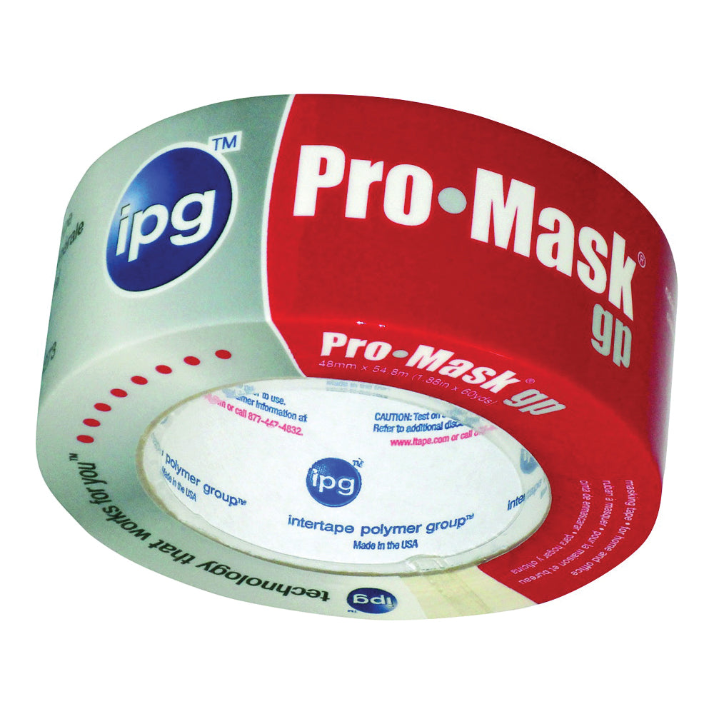 An economical beige, smooth crepe paper masking tape with a pressure-sensitive synthetic rubber adhesive.