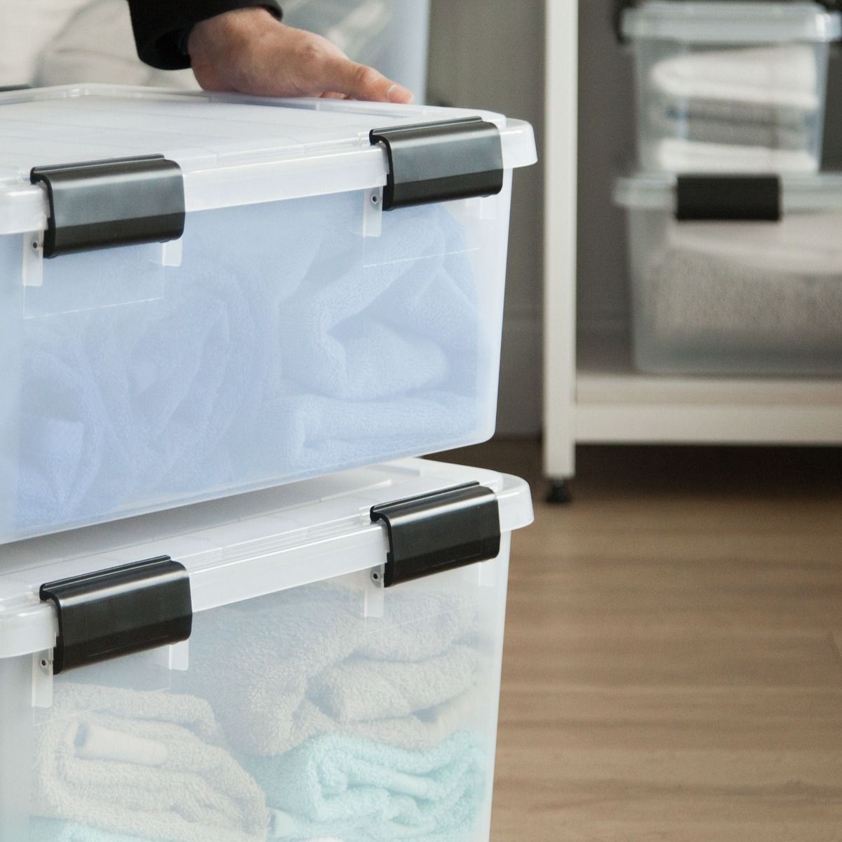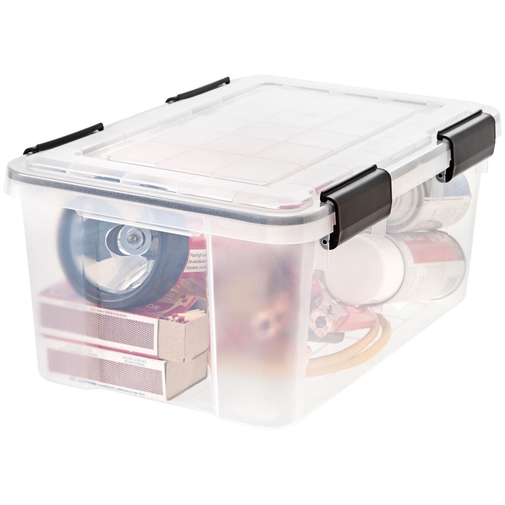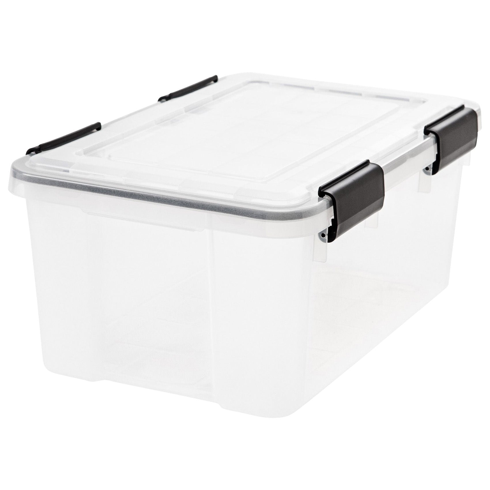 Your favorite keepsakes and other valuables in this 19 qt WEATHERTIGHT® heavy-duty storage tote. The WEATHERTIGHT® seal on the storage bin lid protects contents by keeping air and moisture out. Safely store up to 25 lb of material, such as crafting supplies, photos and movies in these small storage containers. The grooves in the reinforced lids means these 19 qt stackable totes with lids can be placed on top of each other to save space, stack two of the 6.5 qt boxes securely on top of the 19 qt Iris tote or stack two 19 qt totes on top of the 41, 62, 74 or 103 qt totes to create a customized storage solution.