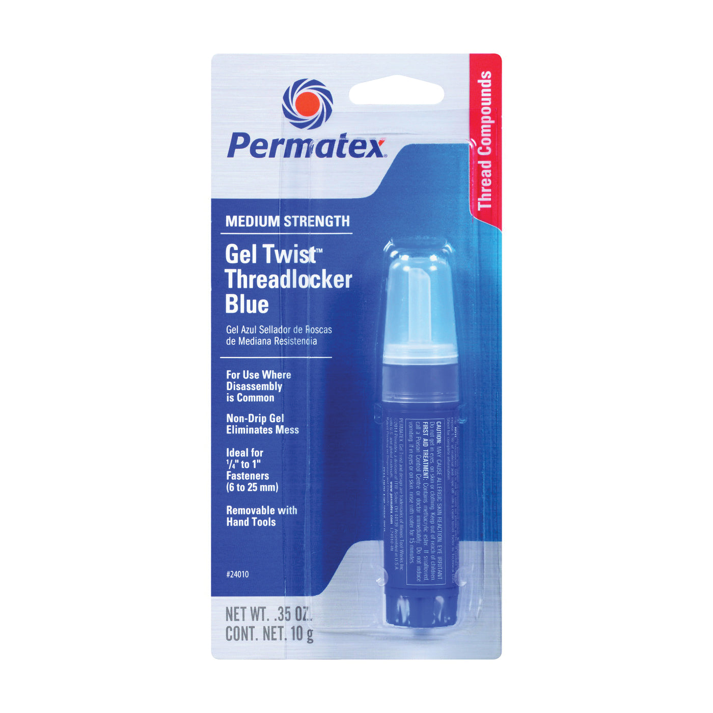 Permatex® medium-strength threadlocker blue gel is a medium-strength anaerobic thread locking gel conveniently packaged in a new Gel Twist applicator. The product, like its liquid counterpart, is a single-component, anaerobic gel that cures when confined in the absence of air between close fitting metal surfaces.