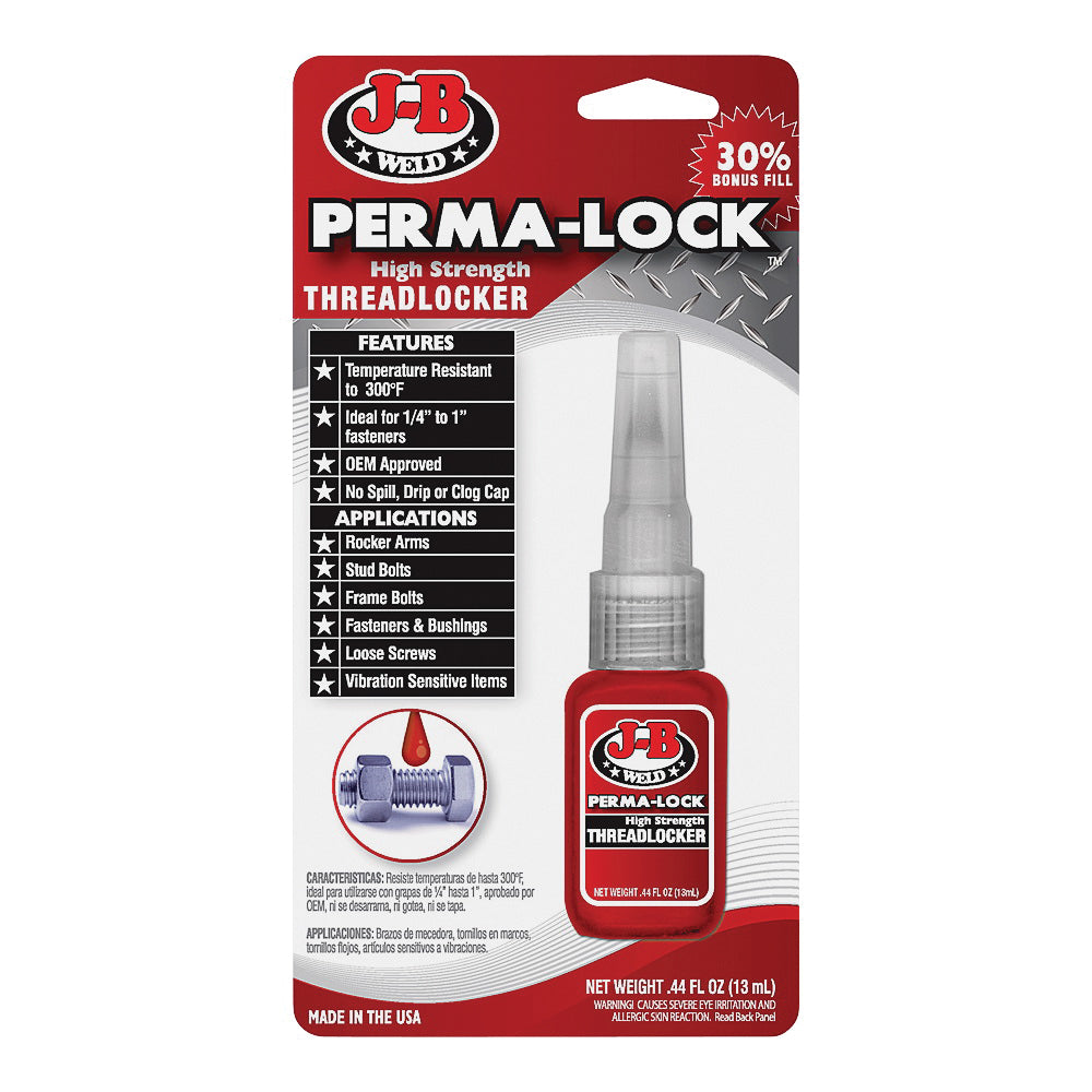 J-B Weld threadlockers provide a reliable and excellent lock and seal for threaded fasteners. Ideal on all mechanical parts, body assemblies and hundreds of other applications to prevent loosening of fasteners from shock and vibration. J-B Weld Perma-Lock medium-strength threadlocker is ideal for fastener applications requiring easy disassembly with hand tools.