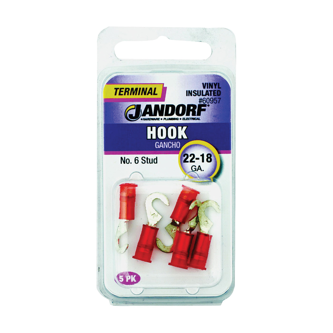 Jandorf Hook Terminal, 22 to 18 AWG Wire, Vinyl Insulation, #6 Stud, Red