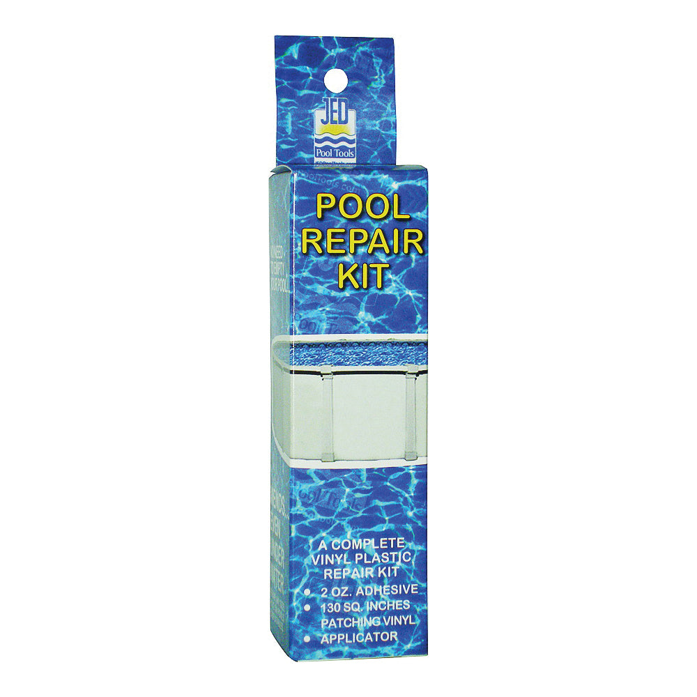 Complete vinyl repair kit to mend pools and inflatables. Mends either wet or dry surfaces, so there's no need to empty your pool. Kit contains 2 oz of adhesive and 130 sq-in of patching vinyl.