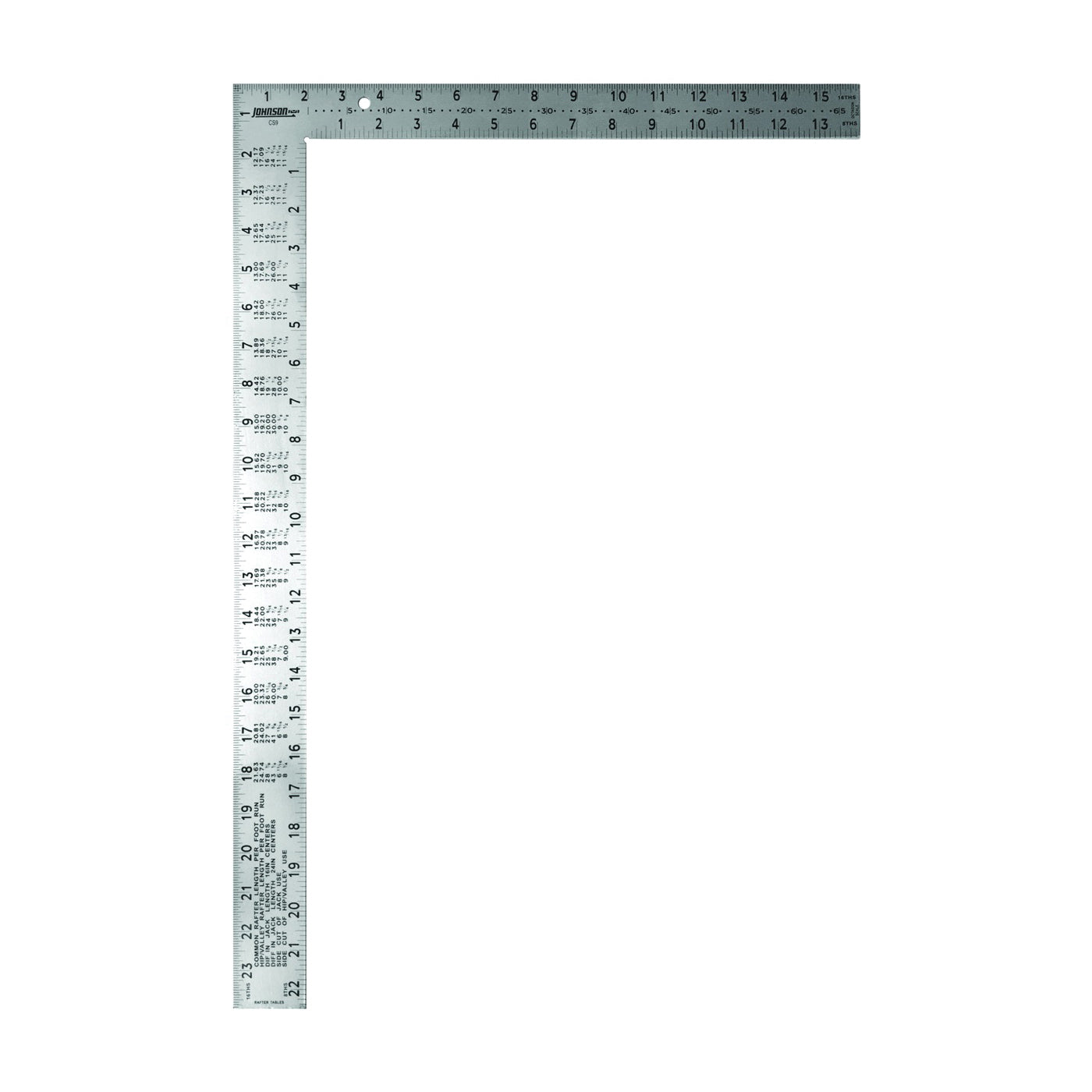 Johnson's 16 x 24 in framing square is everything a builder needs to get the work done quickly, efficiently and accurately. It includes graduations in 1/8 in, 1/10 in, 1/12 in and 1/16 in as well as octagon scales, rafter tables, brace tables and board foot tables, making it useful for any number of different jobs. And reading those graduations and conversion tables is especially easy thanks to Johnson's thermal-bonded EZ Read™ text.