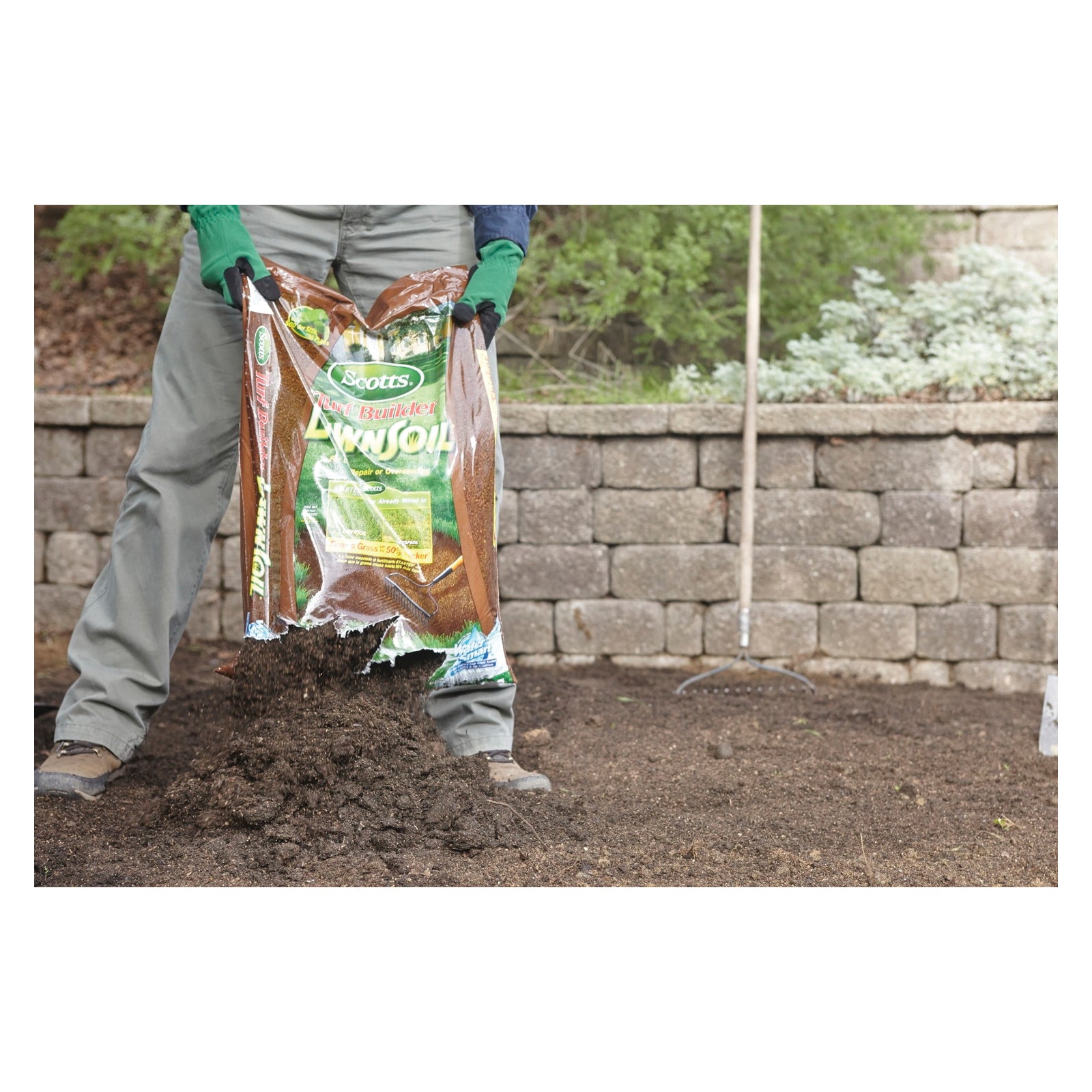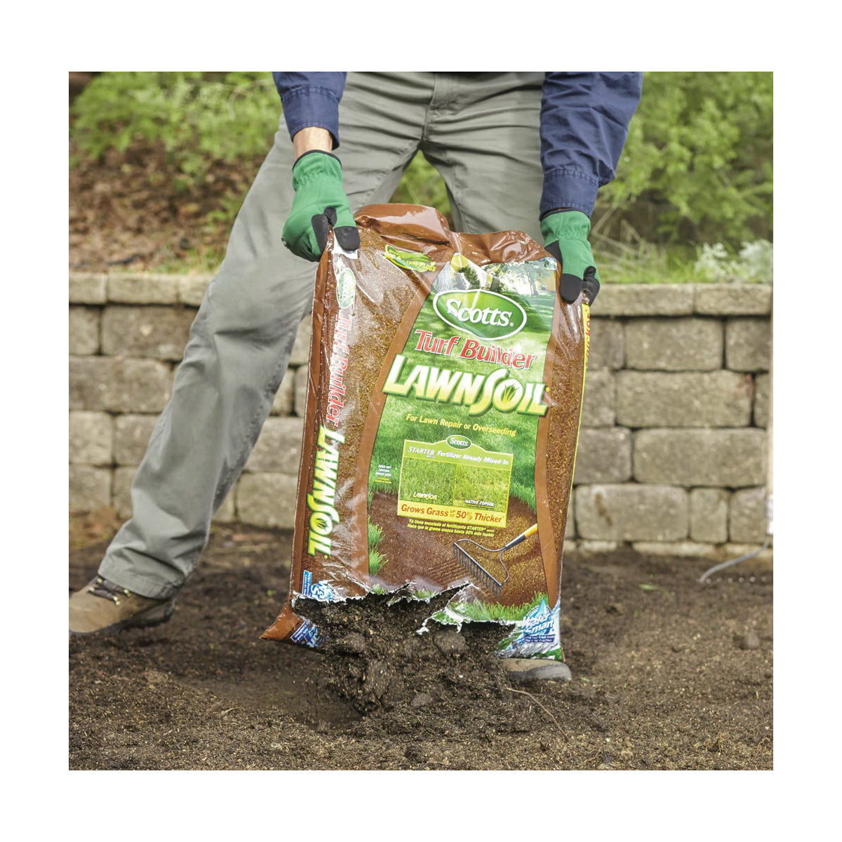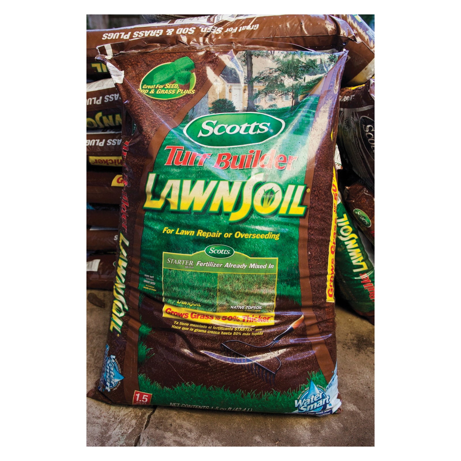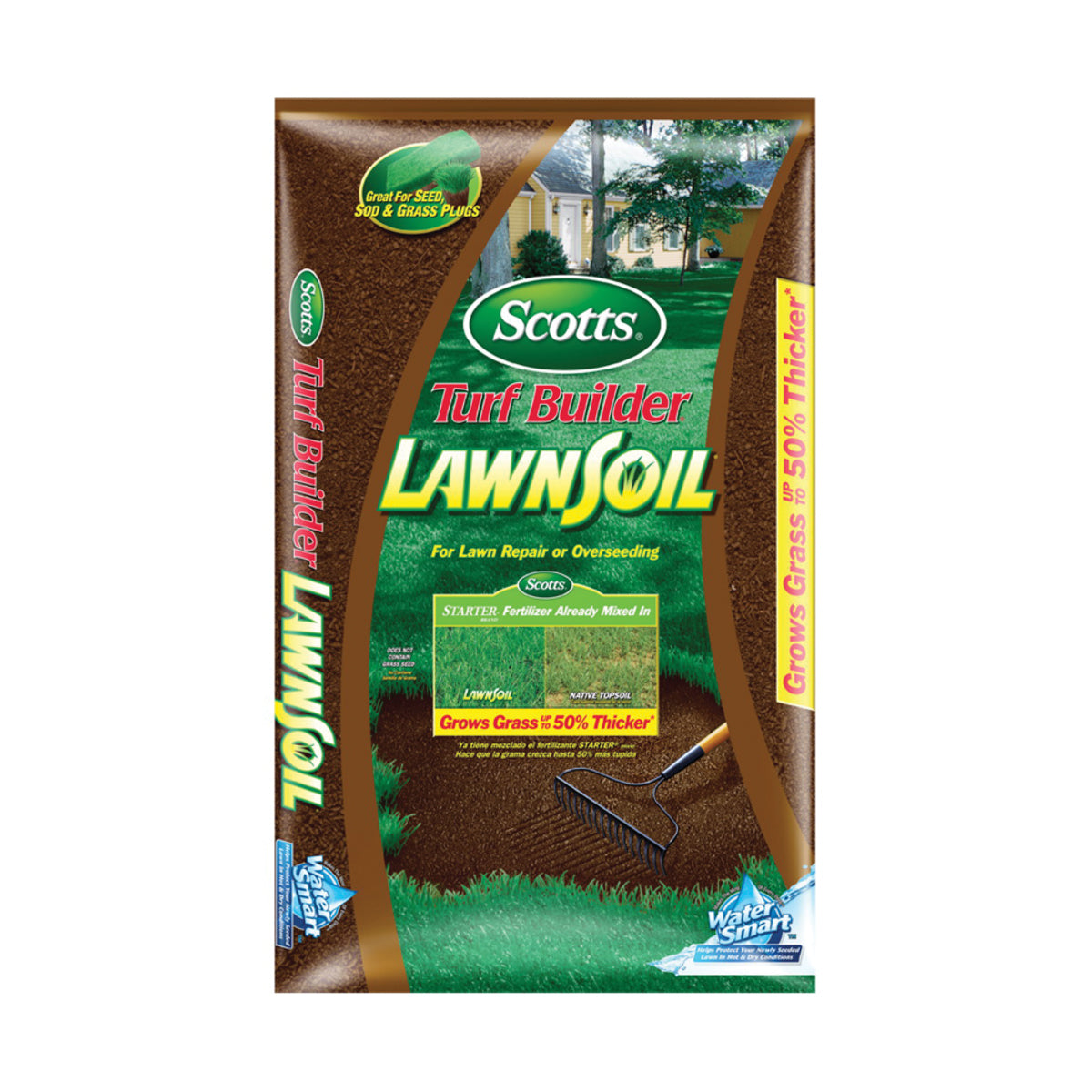 Grow grass up to 50% thicker than native soil - assured - with Scotts® Turf Builder® LawnSoil™. This product has been identified as a Water Smart™ product, indicating that it contains a mixture of ingredients that improve moisture retention. Using Scotts will provide better germination than native soil. At the same time, the added fertilizer helps grass seedlings grow faster and stronger, leading to a thicker, greener lawn.