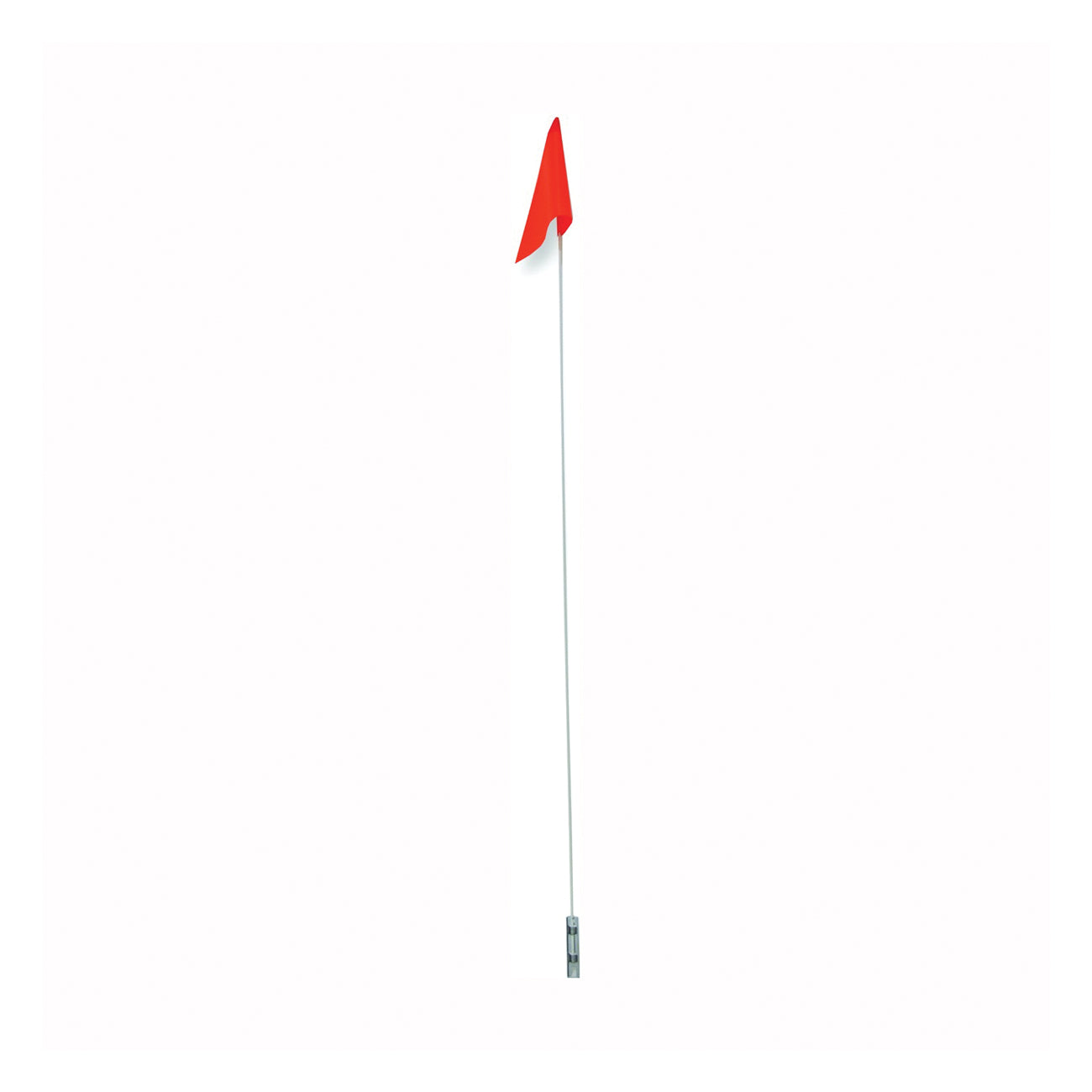 6 ft tall safety flag with fiberglass shaft. Bracket for axle mounting included.